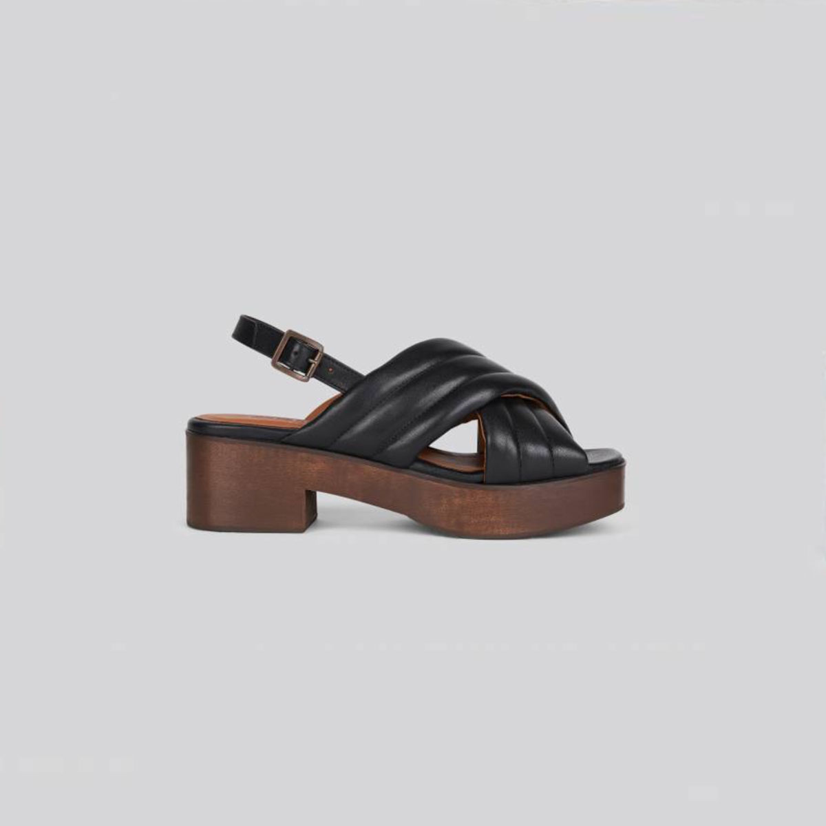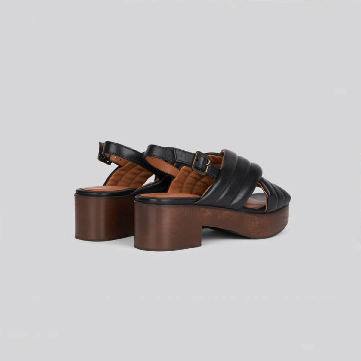Réalisation : Sabot en cuir tannage vegetal noir, bloc Bois 5 cm