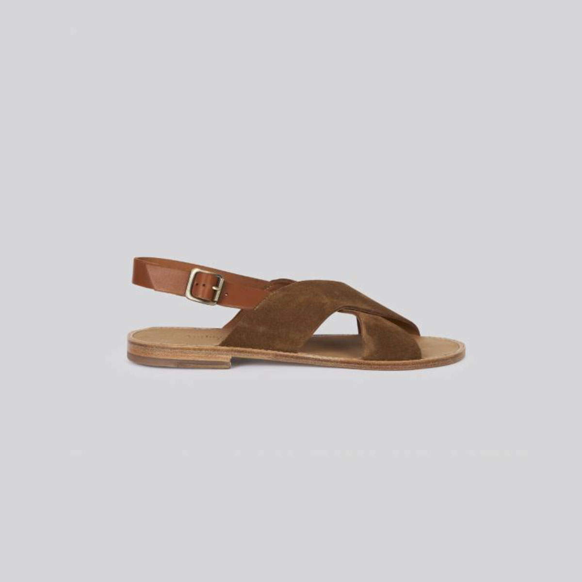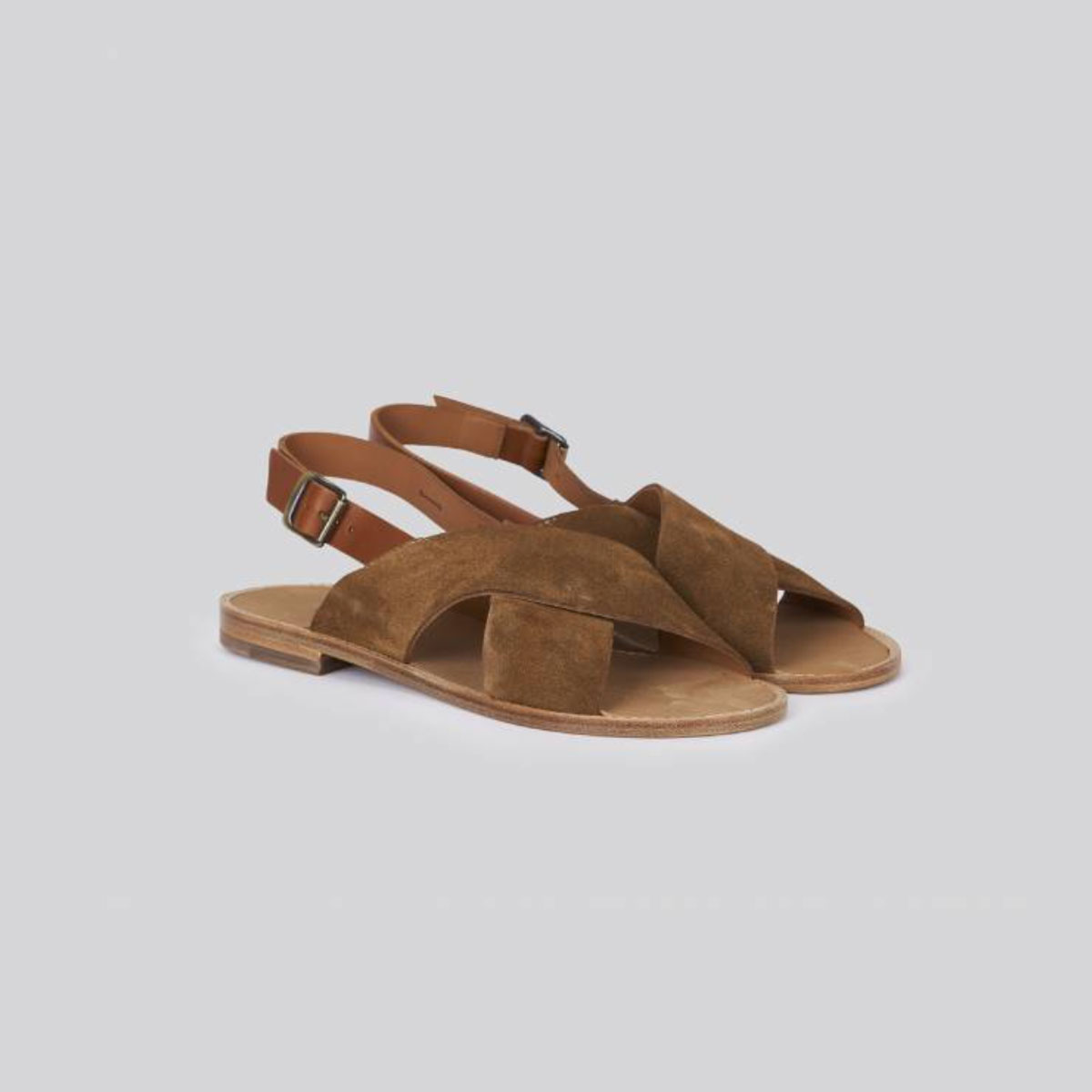 Réalisation : Sandales en cuir suède/ Sangle ajustable et détachable / talon plat