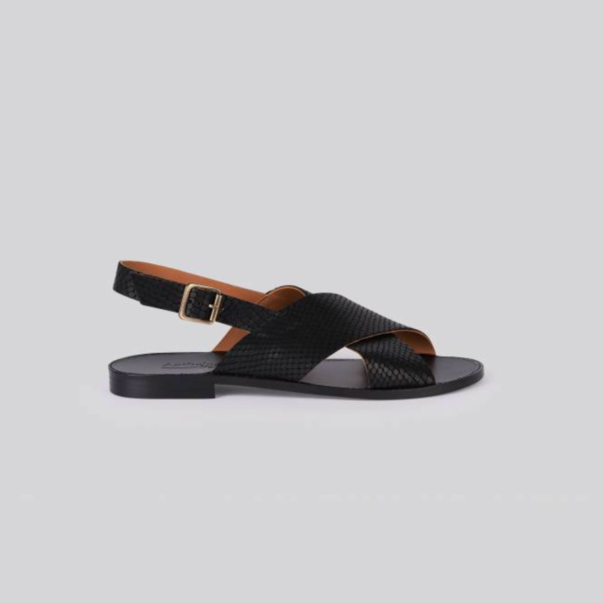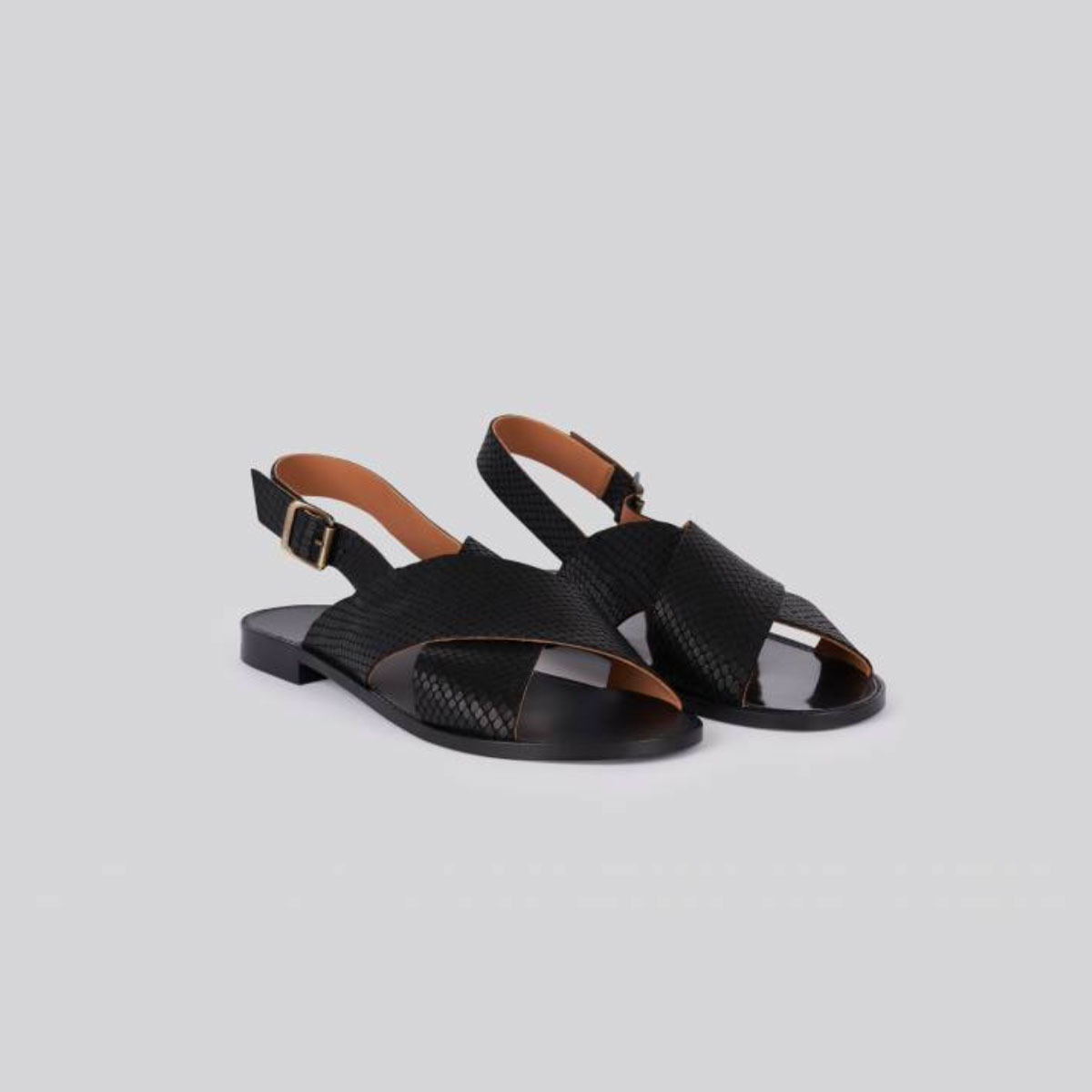 Réalisation : Sandales en cuir noir façons python/ Sangle ajustable et détachable / talon plat