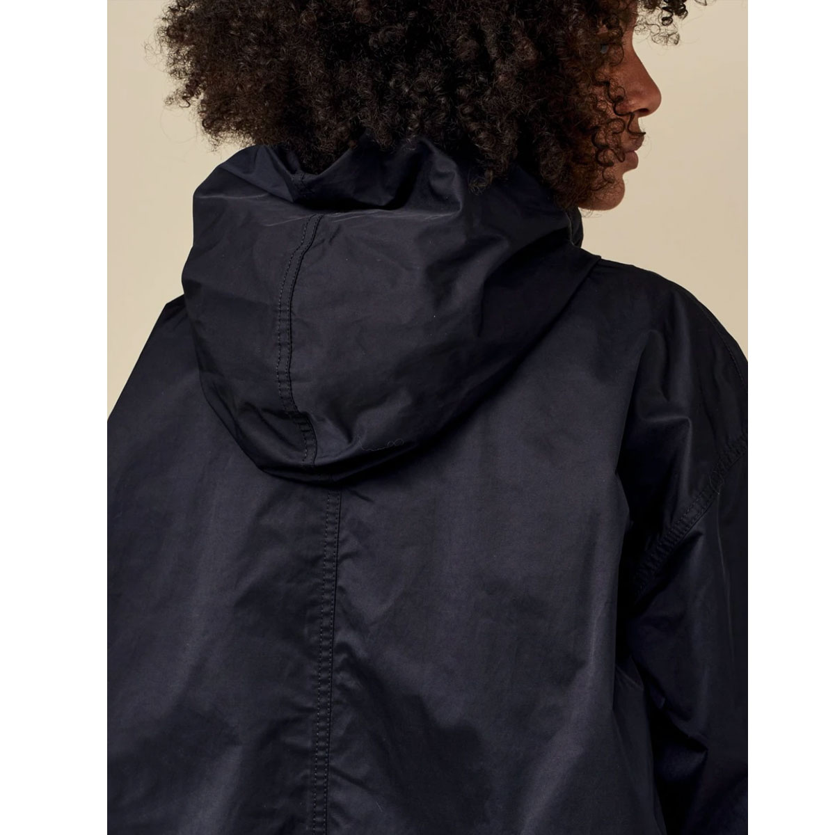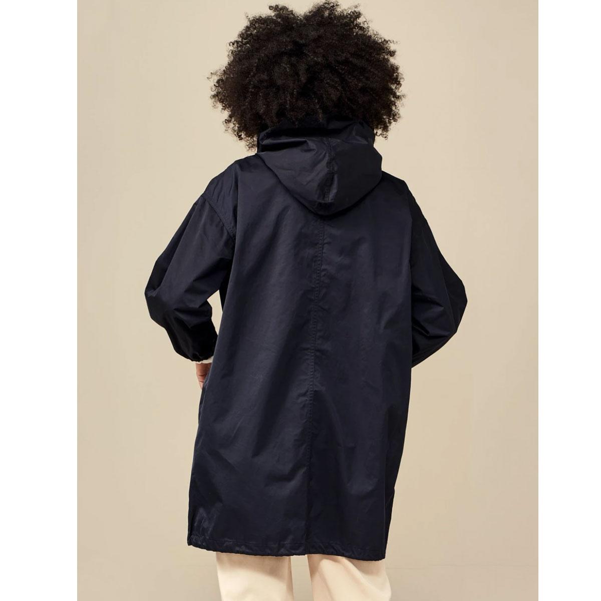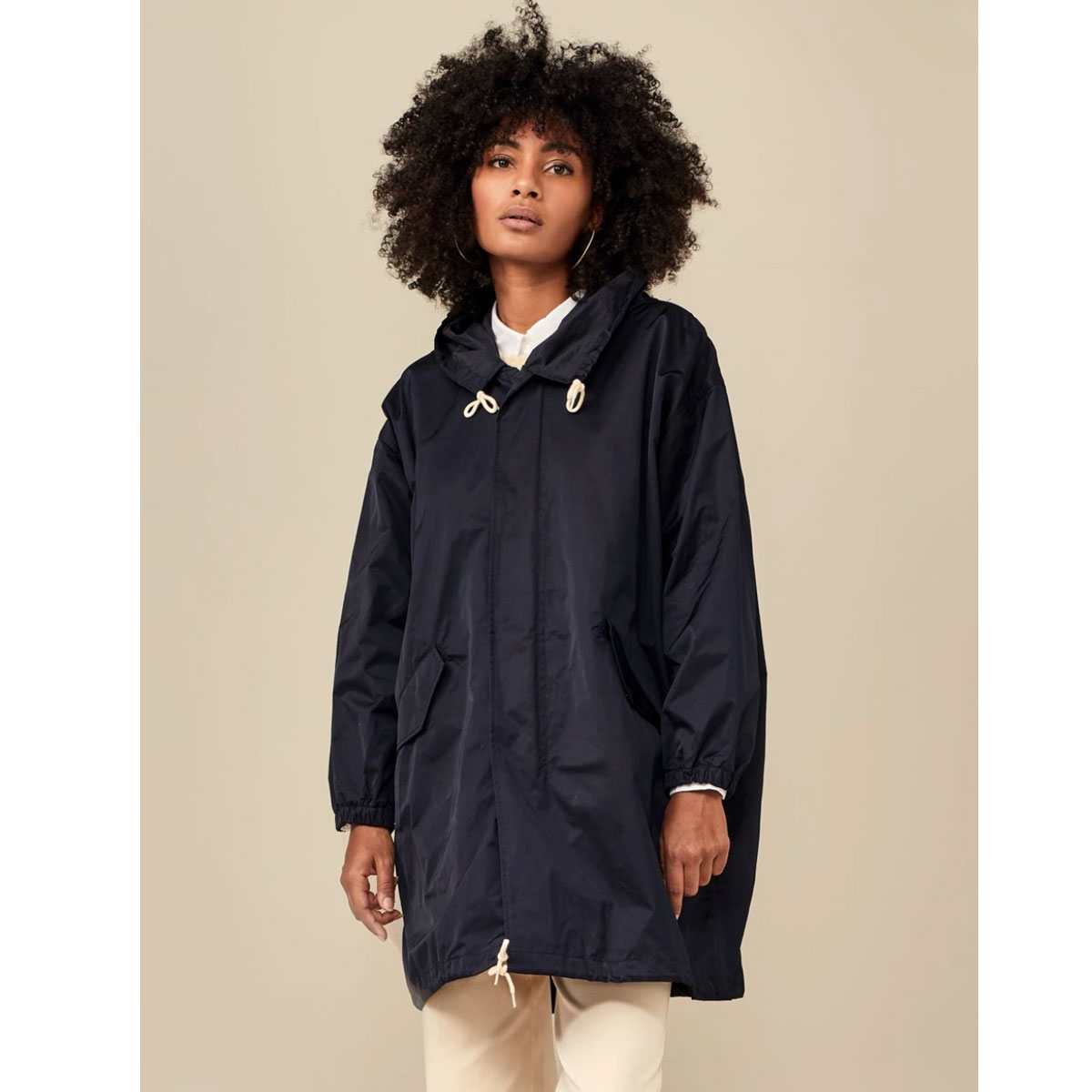 La parenthèse : On aime sa forme surdimensionnée confortablement, ses épaules tombantes, ses poches coupées pratiques (fermables avec des boutons-pression) et sa grande capuche. Un incontournable manteau inter-saisonnier surtout dans cette couleur !