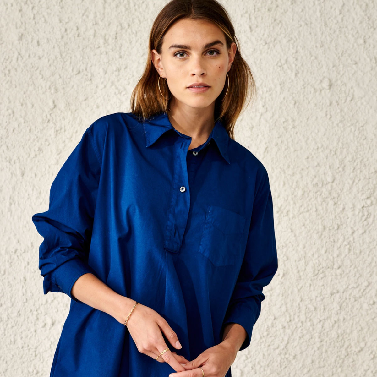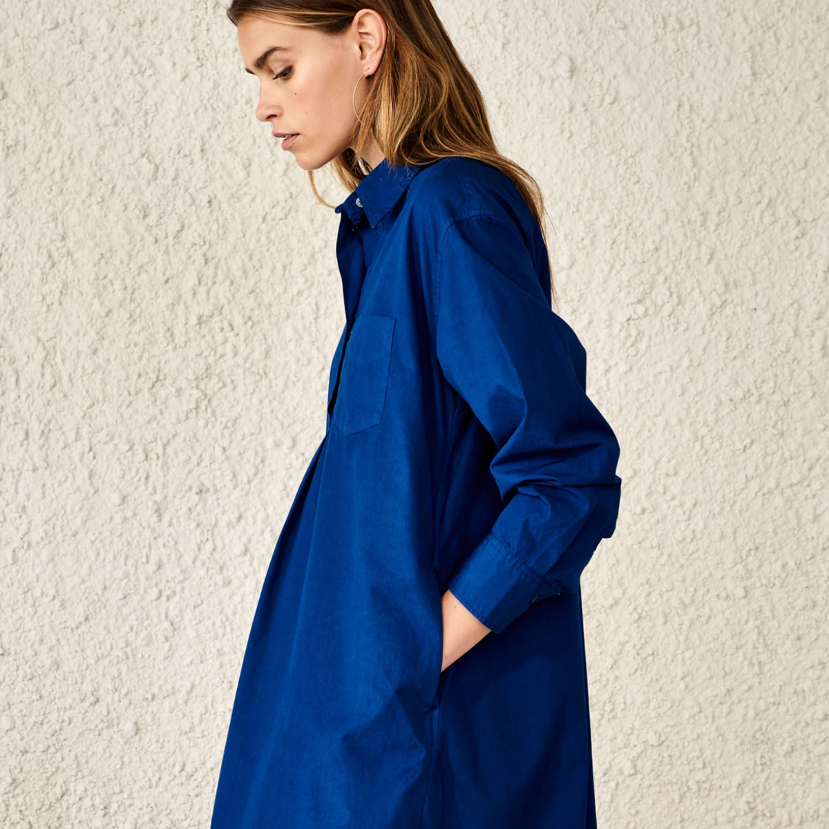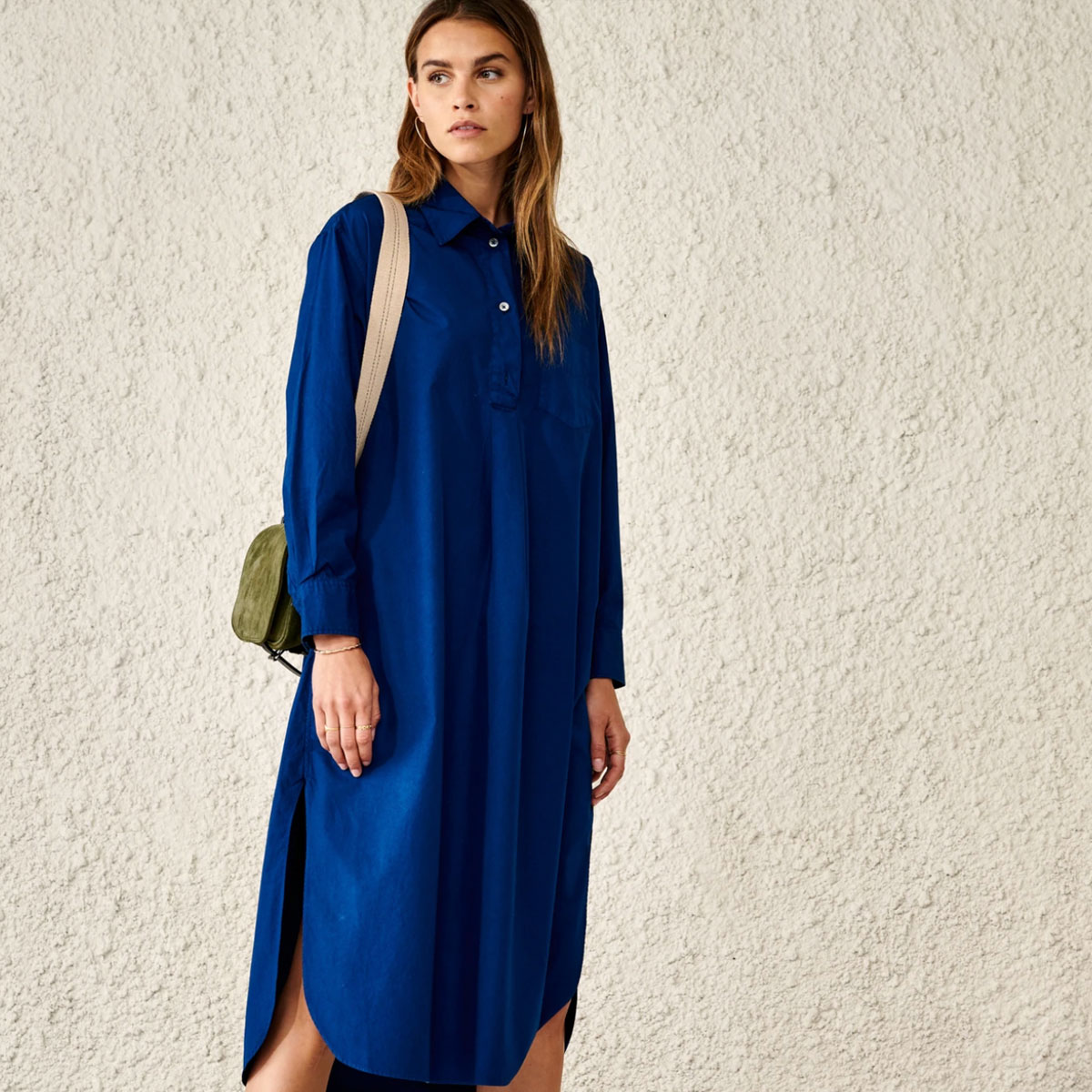 La parenthèse : Confectionnée dans une popeline de coton impeccable, c’est la robe que vous pouvez porter jour après jour avec rien d’autre qu’une paire de baskets ou de sandales.