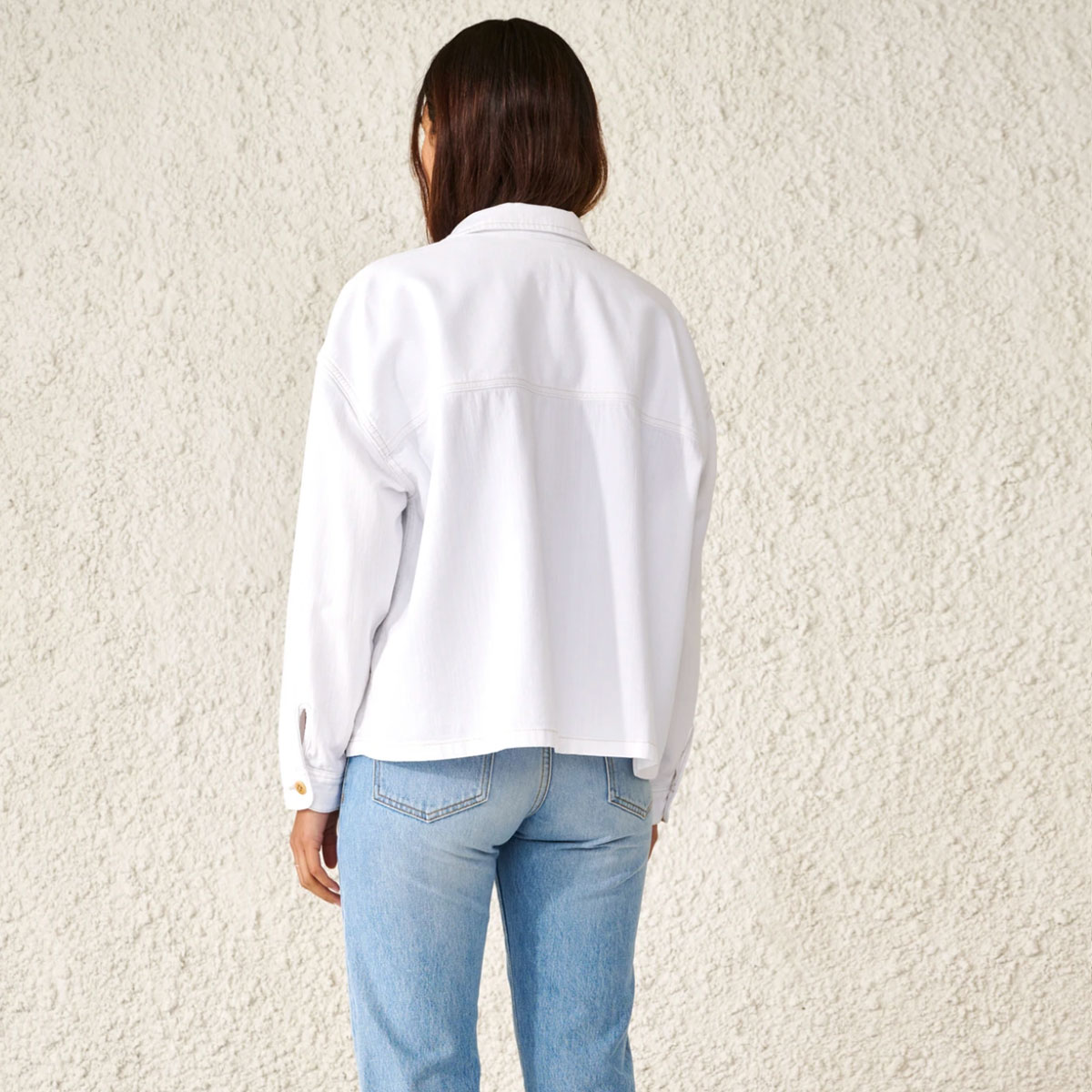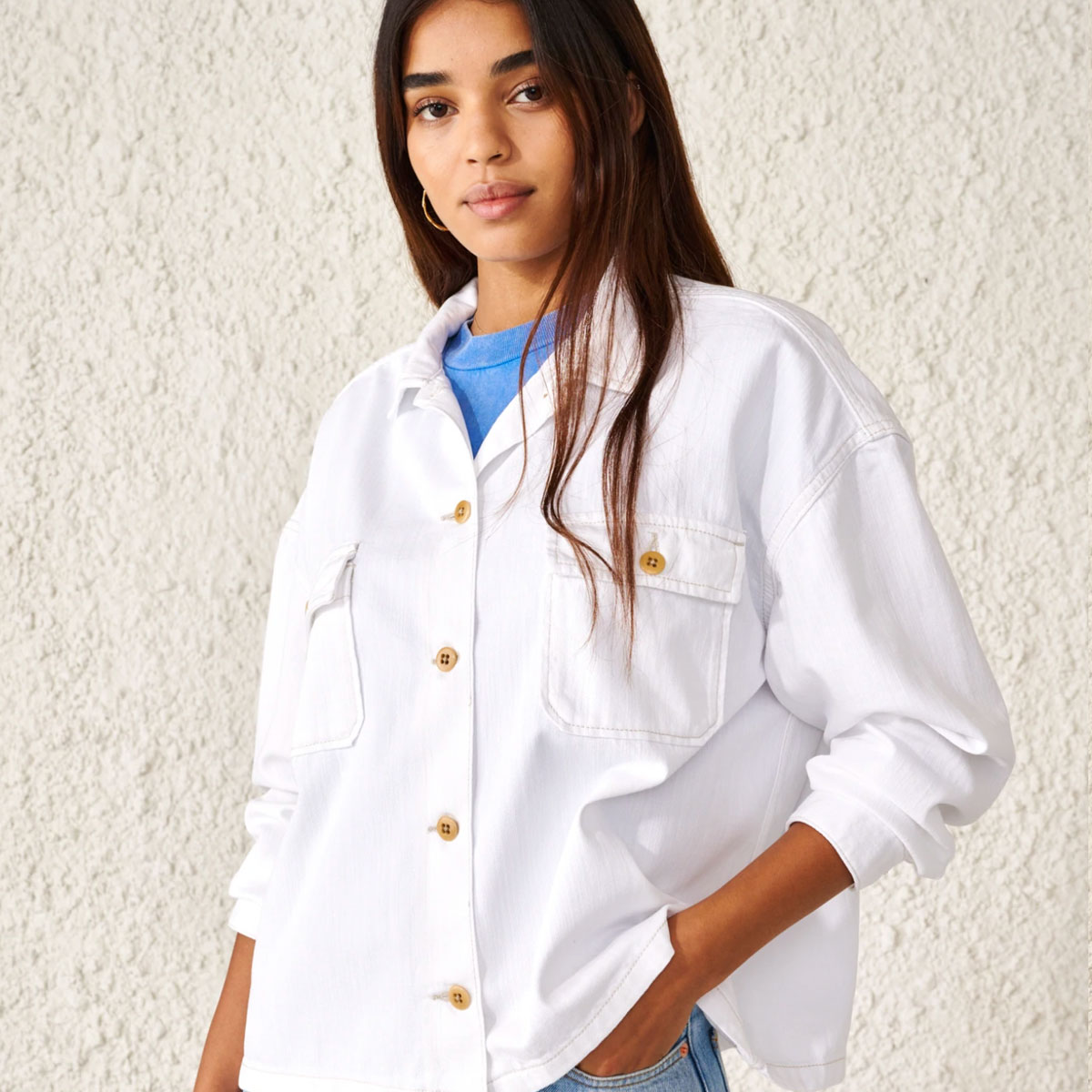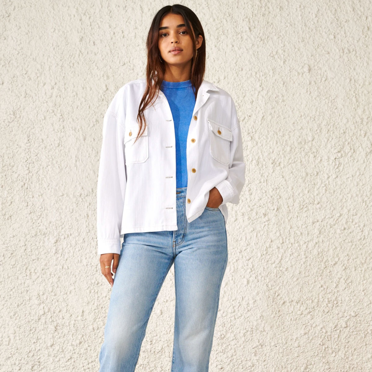 La parenthèse : Coupe courte oversize, deux poches à rabat sur le devant et un col chemise classique, vous adorerez la porter avec un pull fin par un matin frisquet ou comme une veste sur un tee-shirt blanc aux premiers signes de redoux.