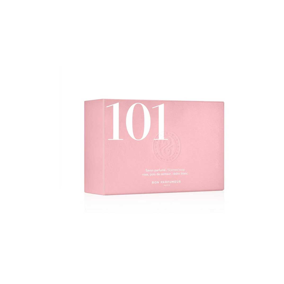 Réalisation : Le savon solide au doux parfum sensuel et délicat du 101 est souligné par la noblesse de la rose et la douceur des muscs. Il vous laisse sur la peau un enveloppant et doux accords de pois de senteur, de muguet et de patchouli pour une pointe de caractère.