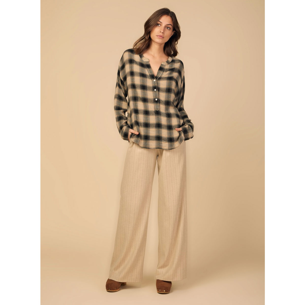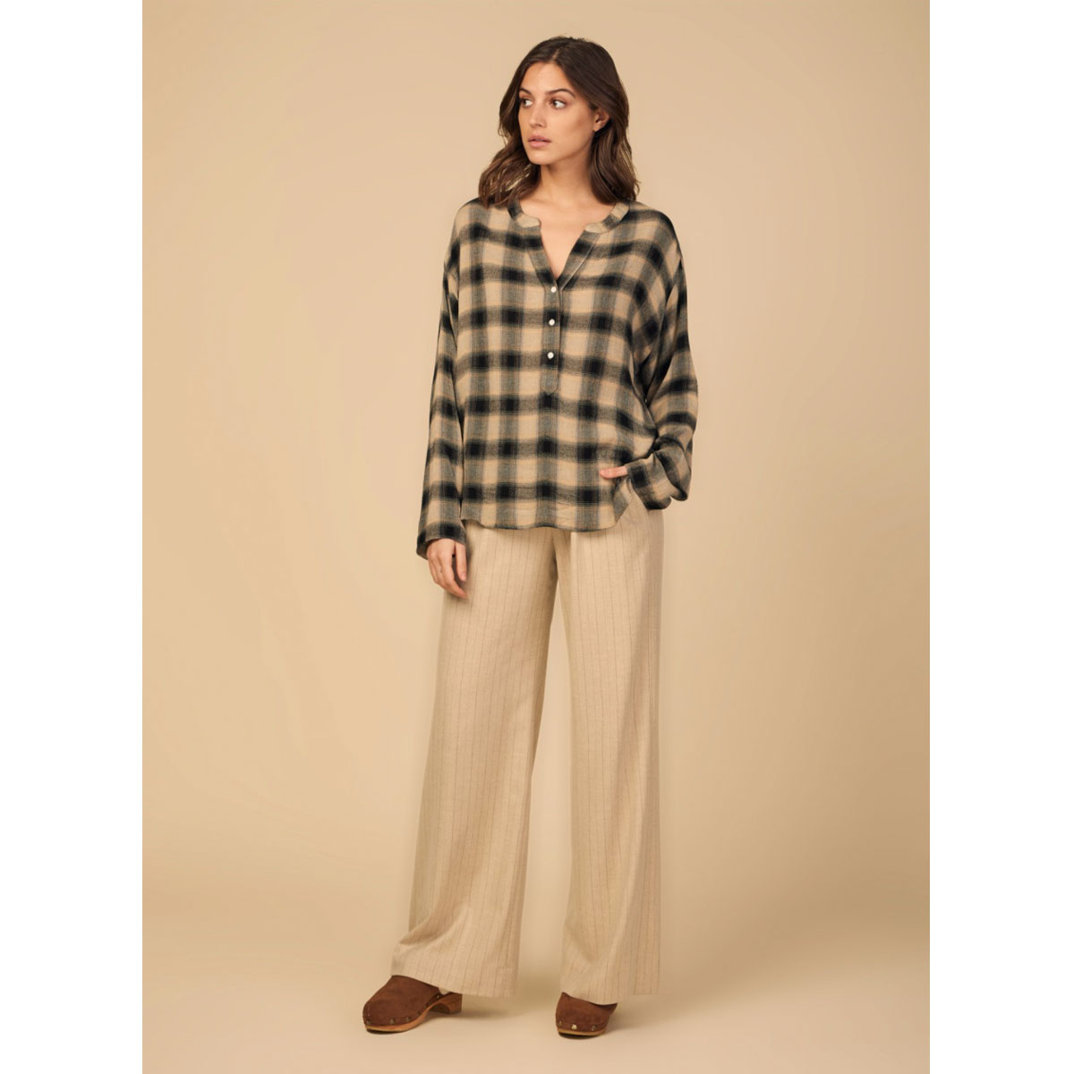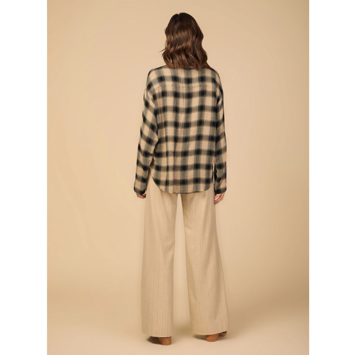 Réalisation : Chemise fluide oversized en viscose et laine vierge à carreaux