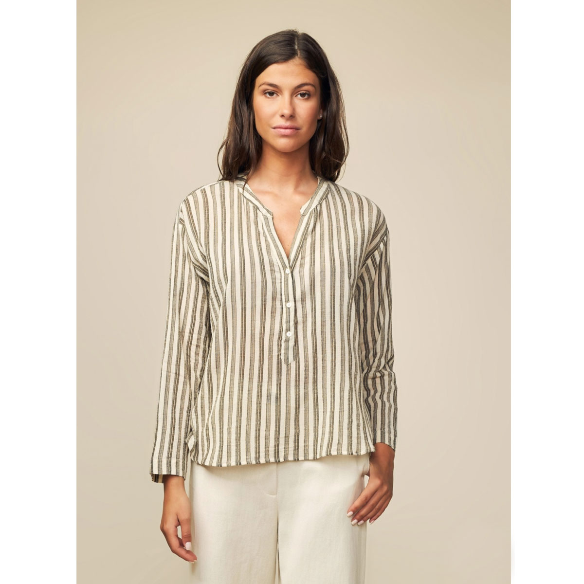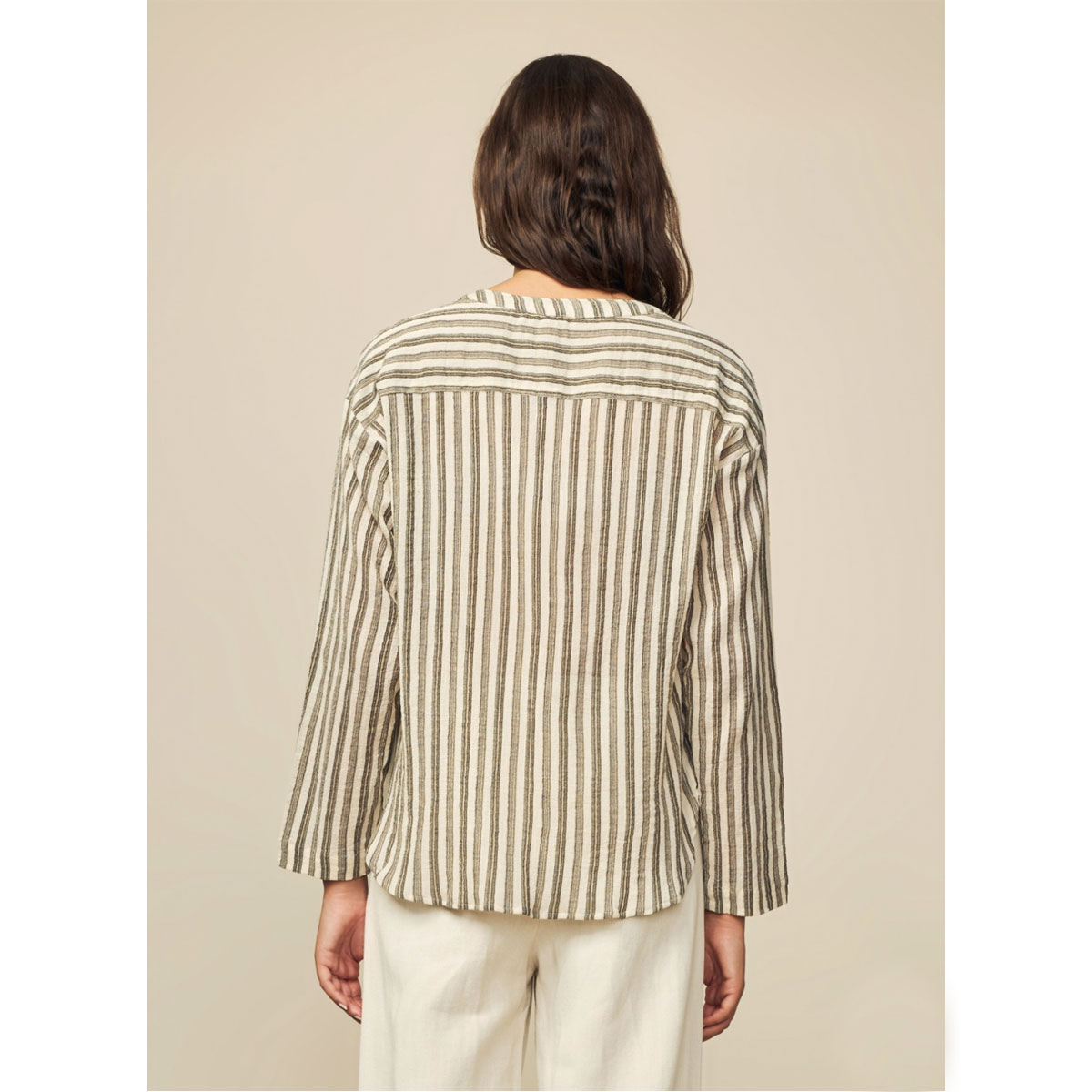 Réalisation : Chemise en coton imprimé à manches longues et col tunisien.
