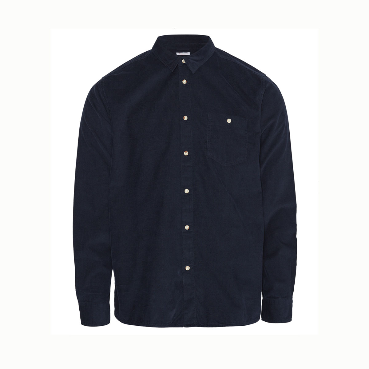 Réalisation : La chemise en coton Knowledge Cotton Apparel a une coupe régulière avec un ourlet incurvé en velours côtelé
