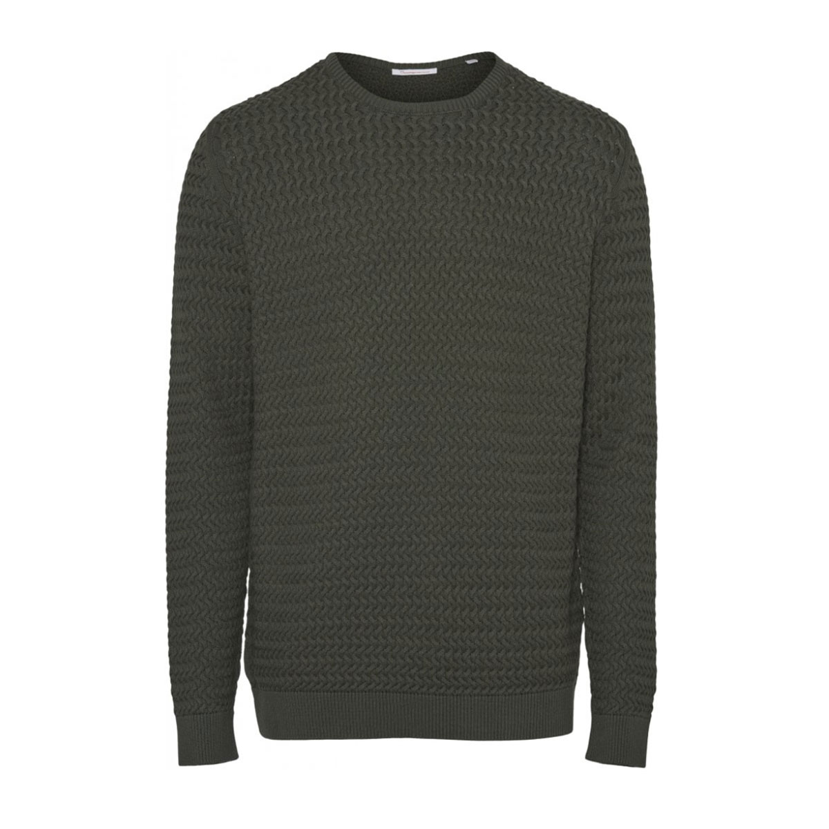 Réalisation : Le pull KnowledgeCotton Apparel est tricoté à partir de coton doux et présente une structure en maille torsadée irrégulière. Col rond, poignets et ourlet côtelés.