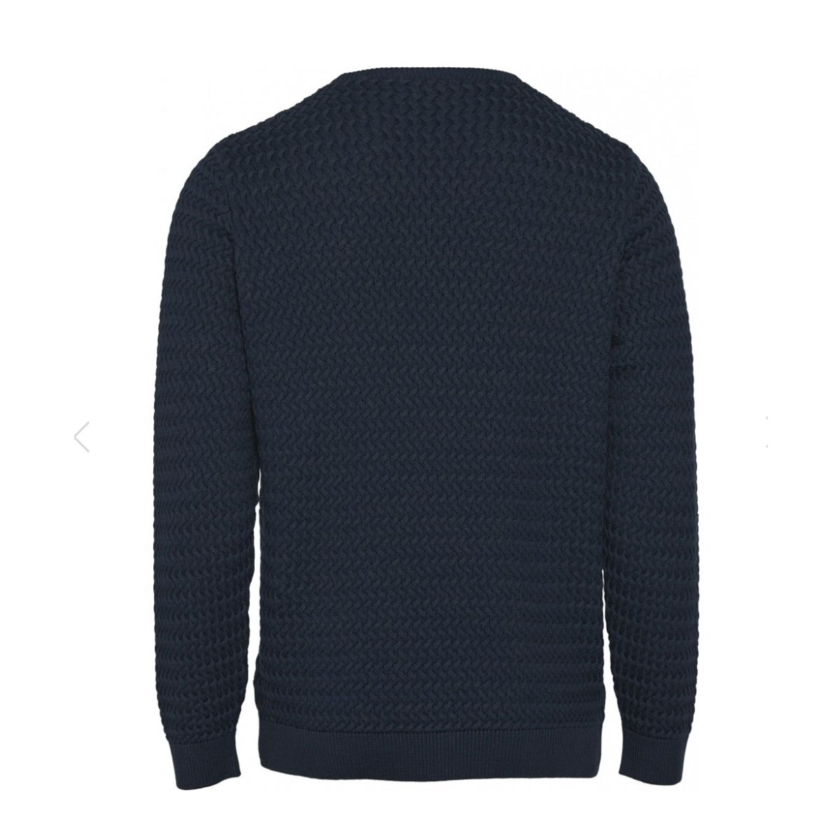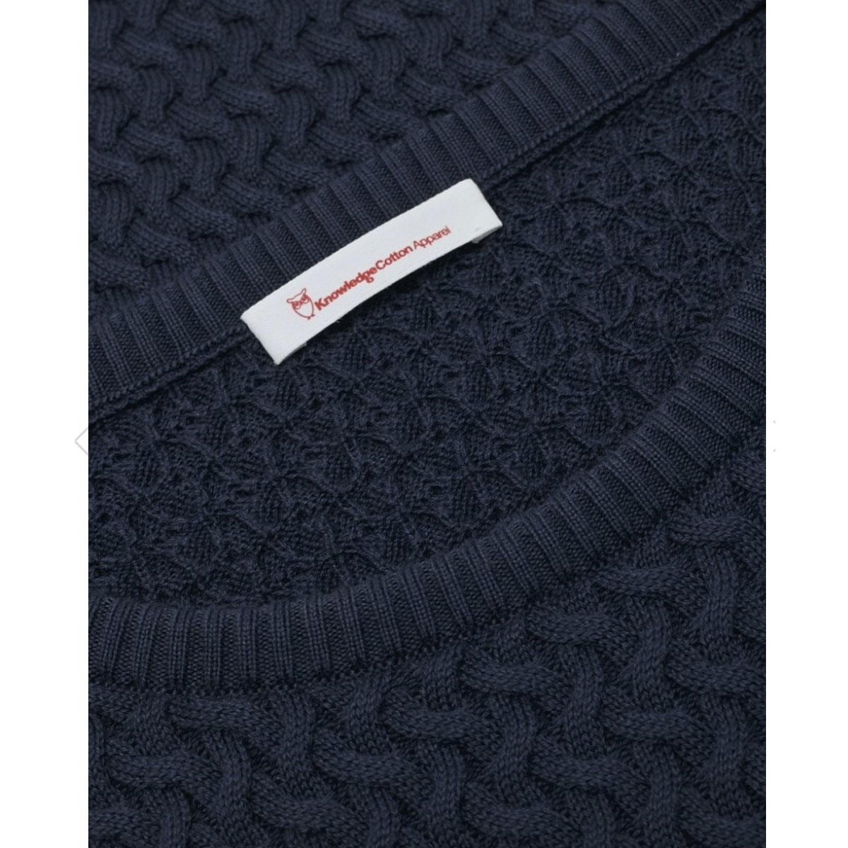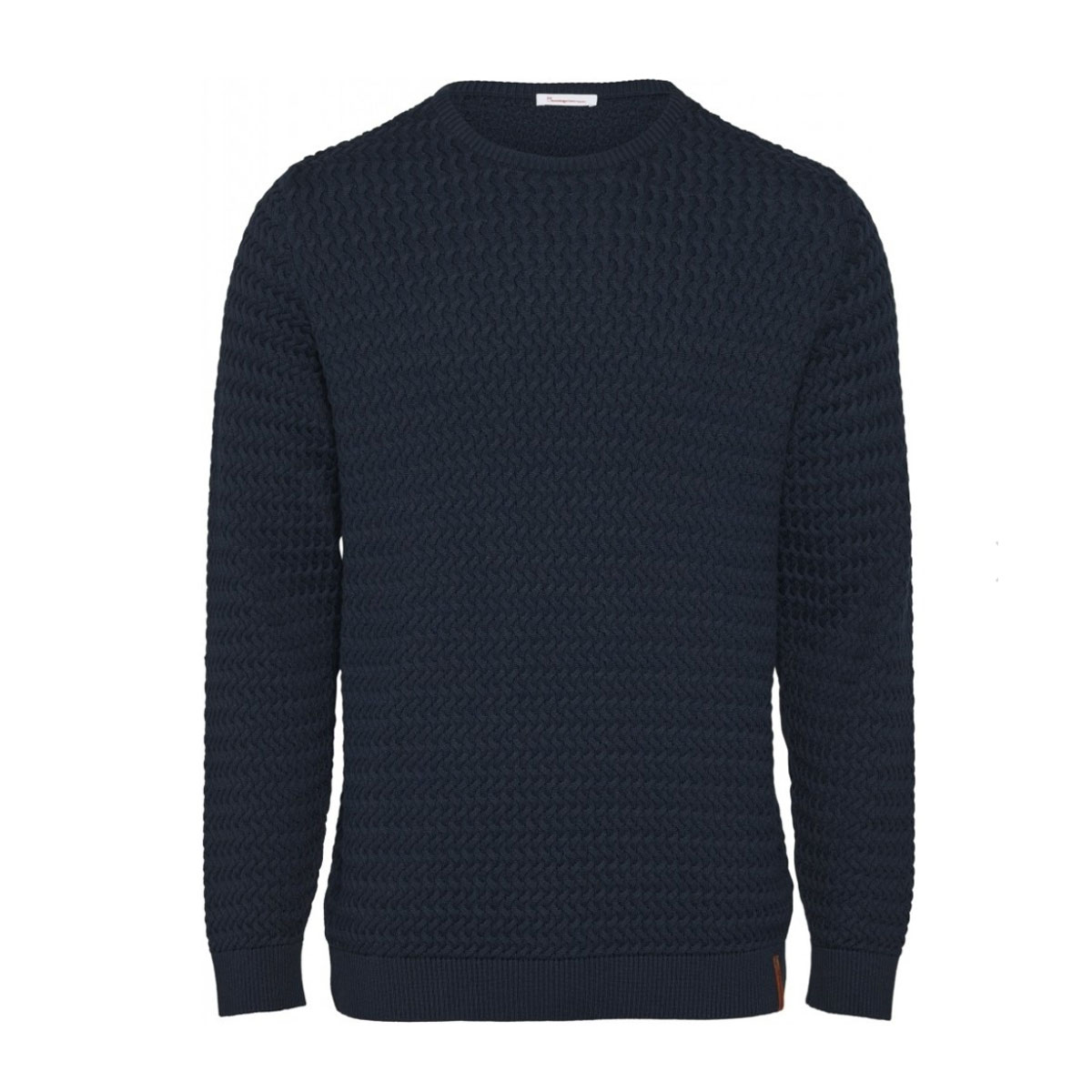 Réalisation : Le pull KnowledgeCotton Apparel est tricoté dans une jauge fine à partir d’un doux mélange de Tencel / coton biologique / lin.