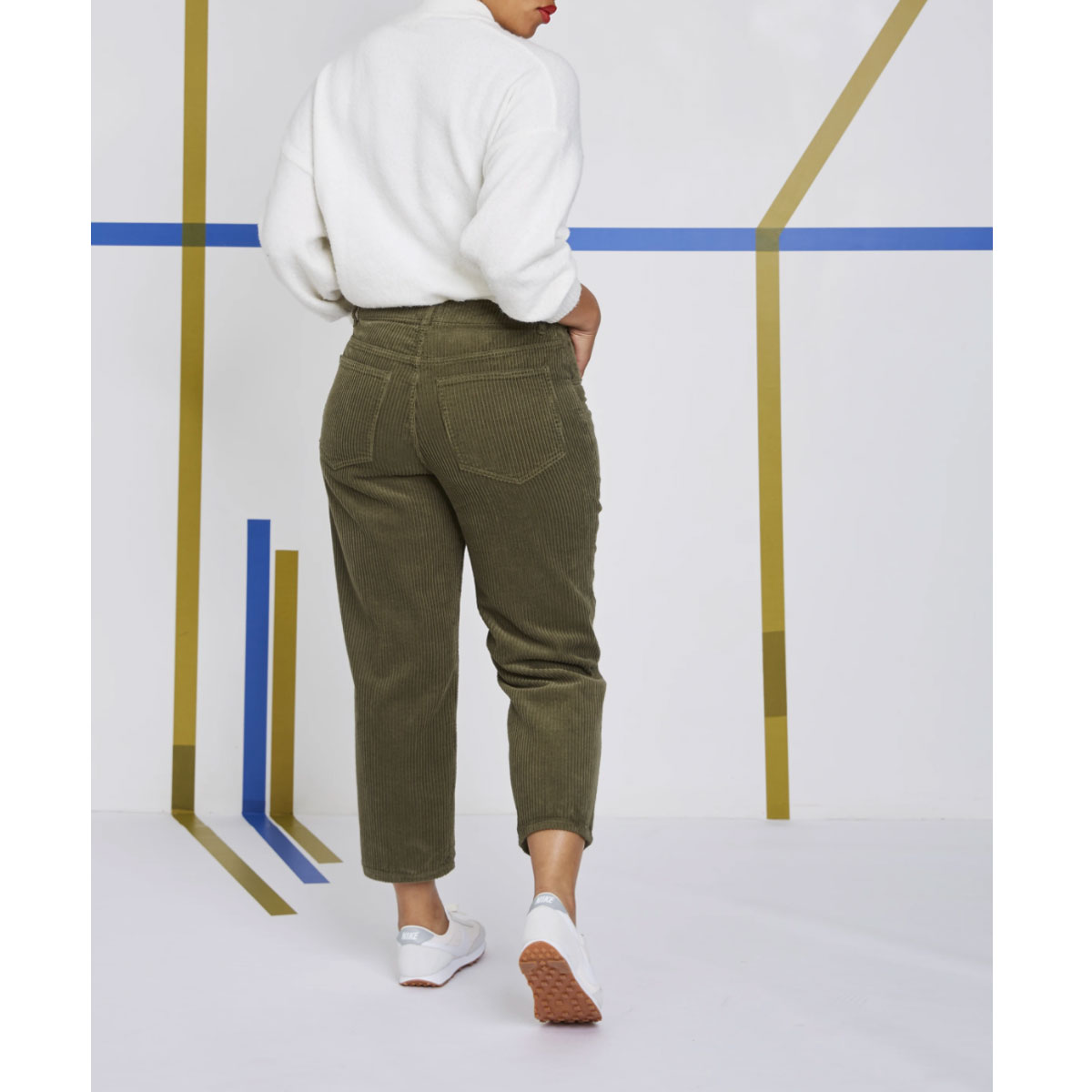 Réalisation :Un velours côtelé fin et souple. Taille moyenne et longueur crop à la cheville.