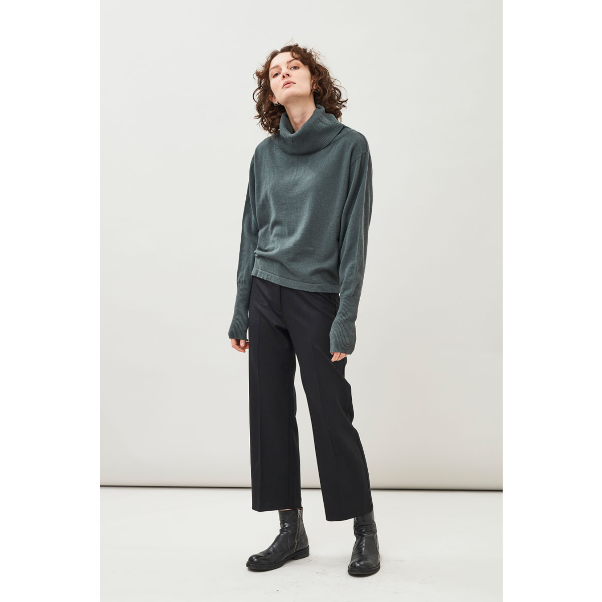 Réalisation : Le col bénitier Isa boxy est confectionné dans un mélange de cachemire et laine d’agneau italienne. La coupe est carrée avec des manches généreuses qui se terminent par un poignet côtelé haut et plus serré. Ourlet inférieur tubulaire pour garder le corps carré et généreux col rabattable côtelé.