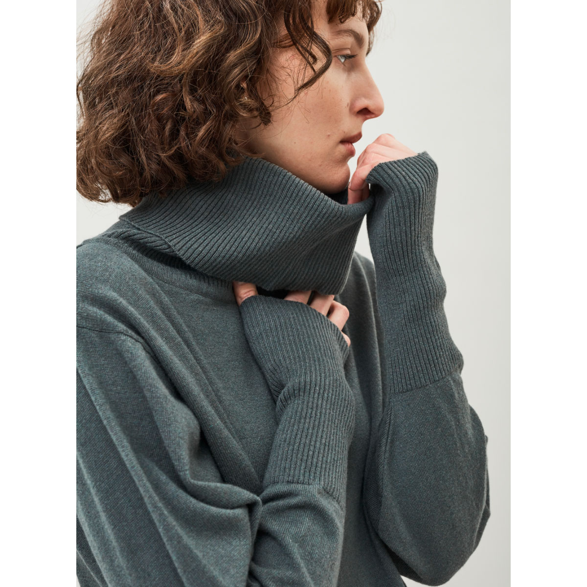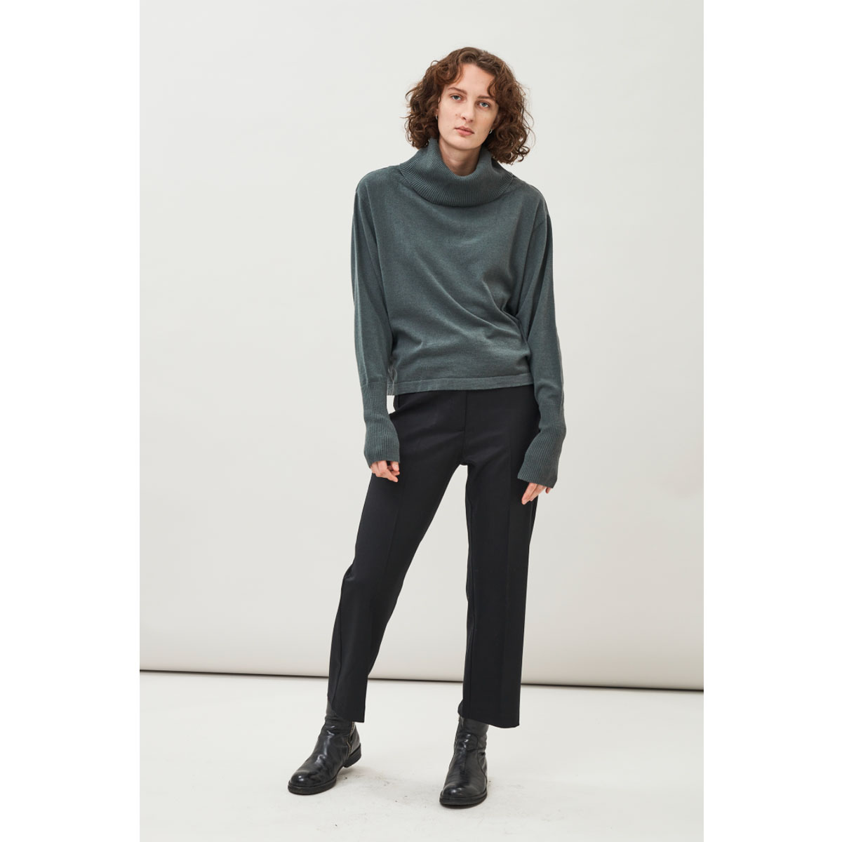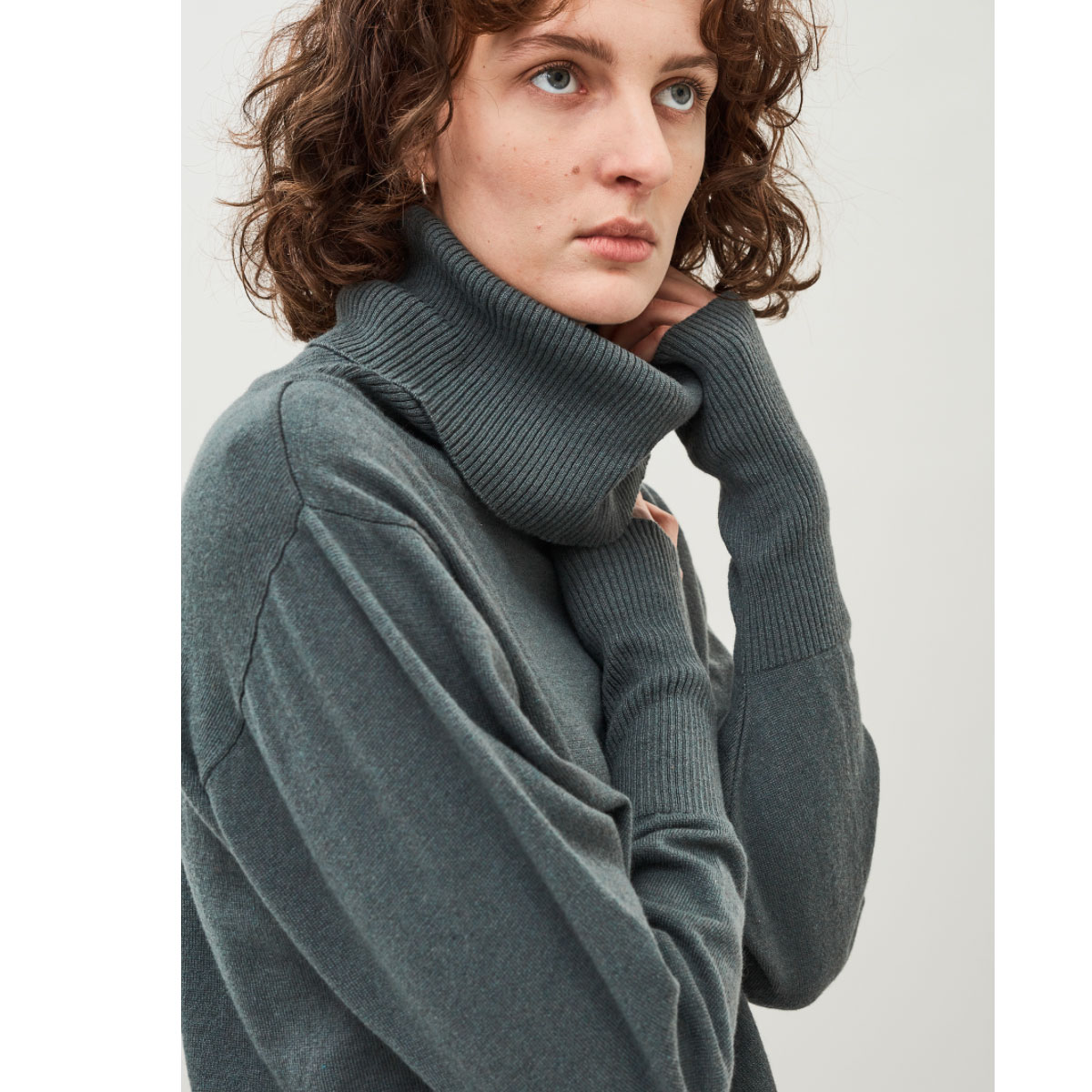 Parenthèse : Un pull classique revisité. Même si le pull est généreux, il se glisse facilement sous n’importe quelle veste ou manteau grâce à la légèreté du tissu. À porter avec un jean le jour ou à glisser dans un pantalon habillé pour le dîner.