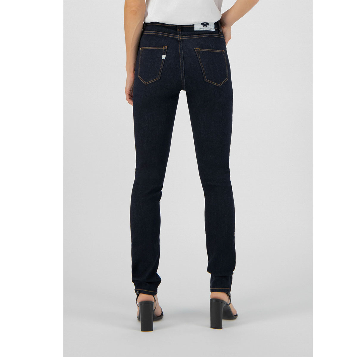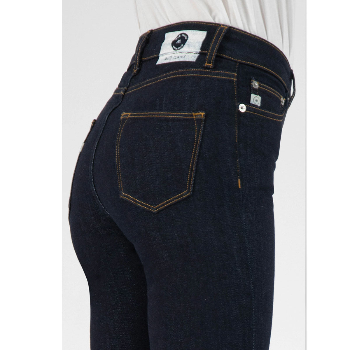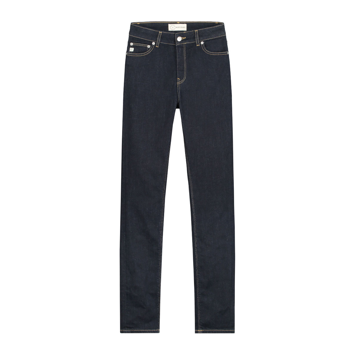 Le tissu de haute qualité est fabriqué à partir de coton biologique recyclé, complété avec 2% de stretch pour un ajustement confortable. La couleur Strong Blue est créée en lavant une fois le tissu indigo bleu profond. Ce traitement minimal est meilleur pour l’environnement et maintient la couleur foncée du jean.