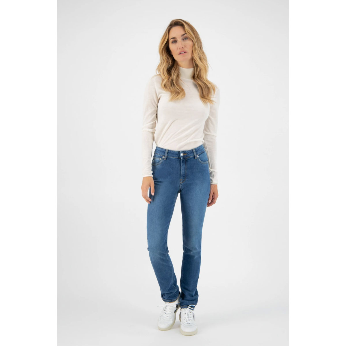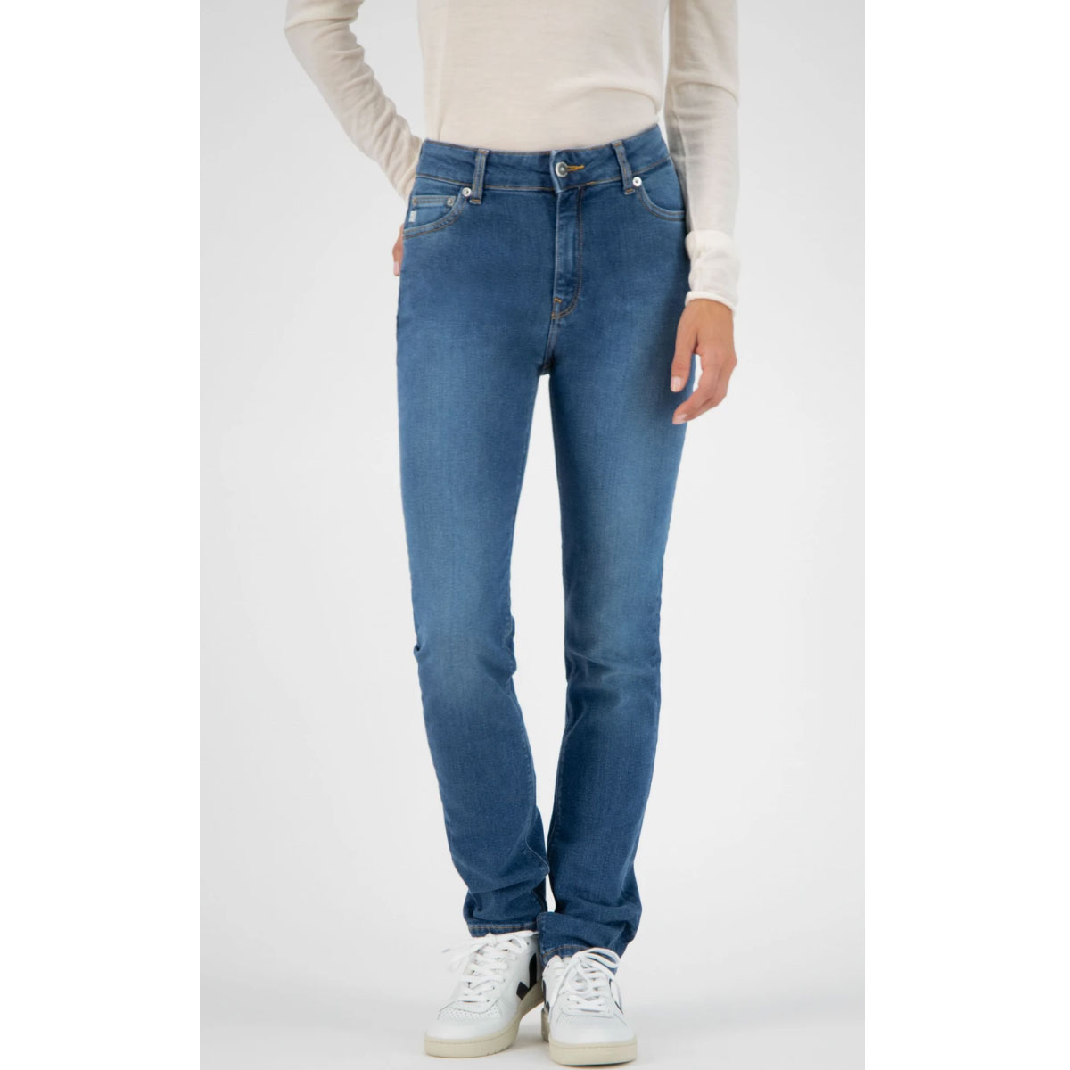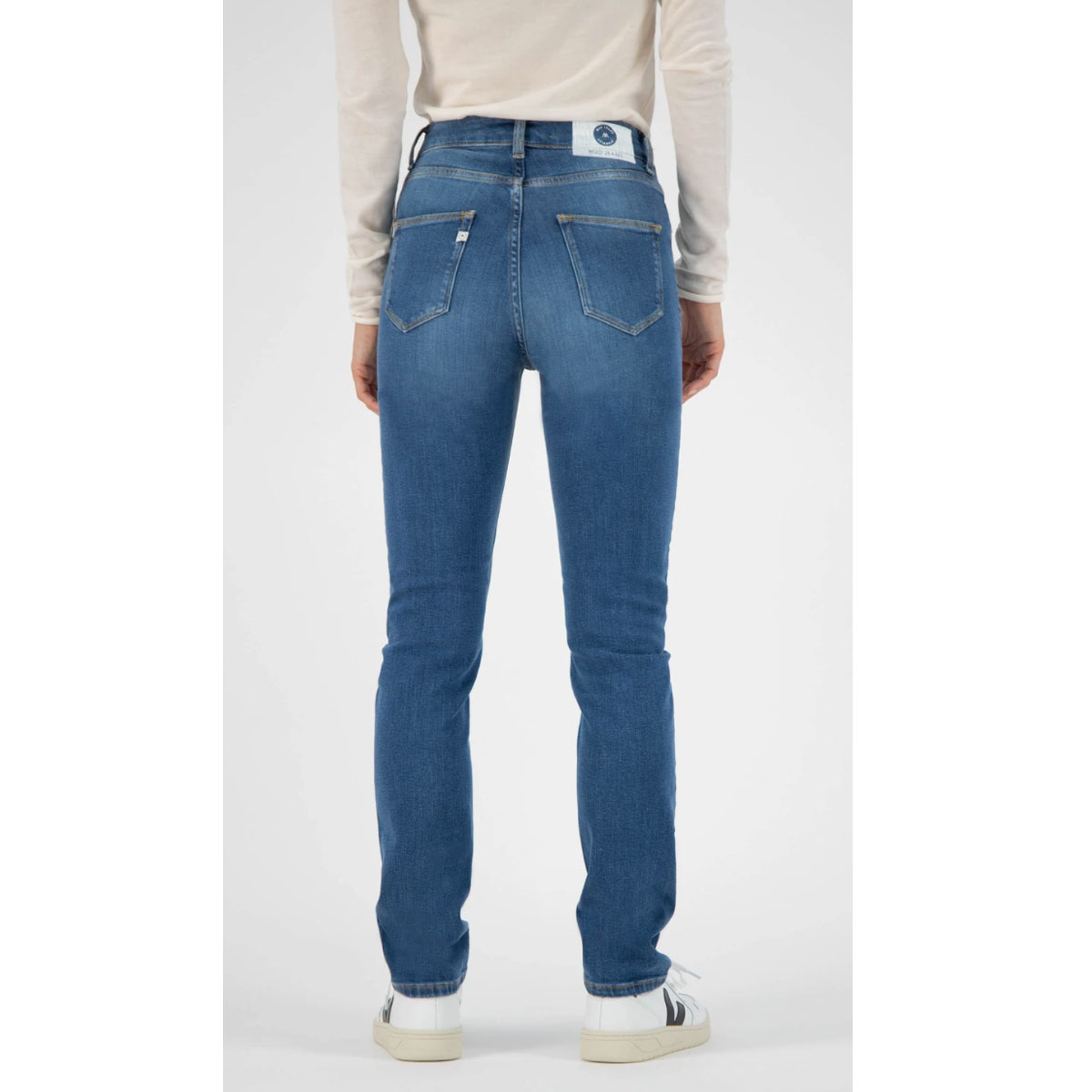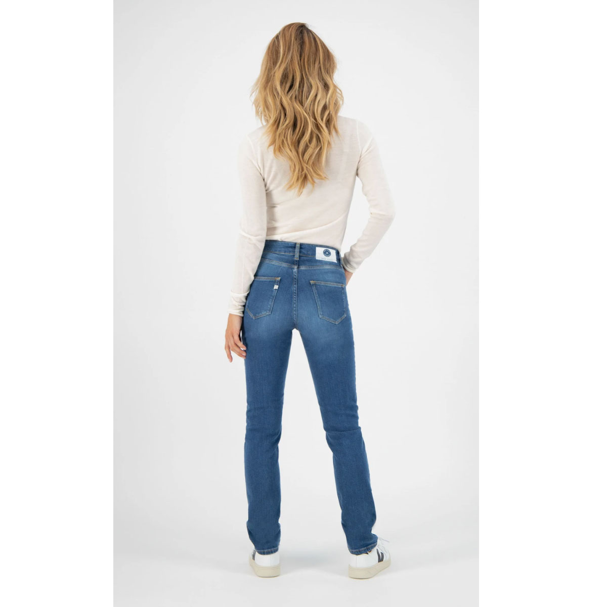 Le tissu de haute qualité est fabriqué à partir de coton biologique recyclé, complété avec 2% de stretch pour un ajustement confortable. La couleur Strong Blue est créée en lavant une fois le tissu indigo bleu profond. Ce traitement minimal est meilleur pour l’environnement et maintient la couleur foncée du jean.