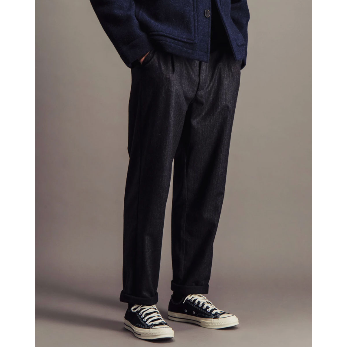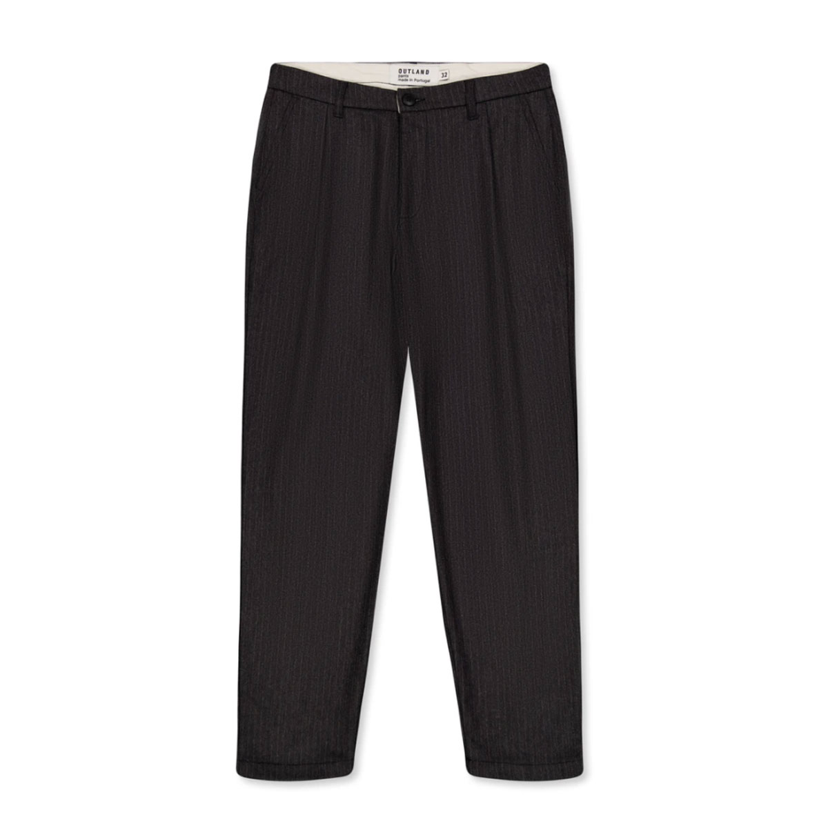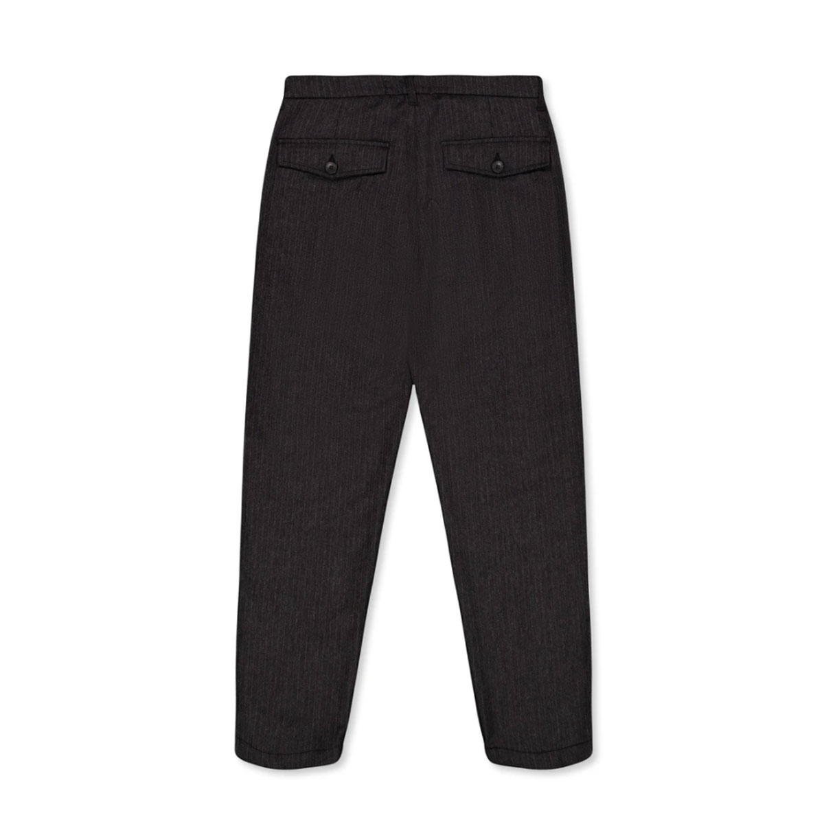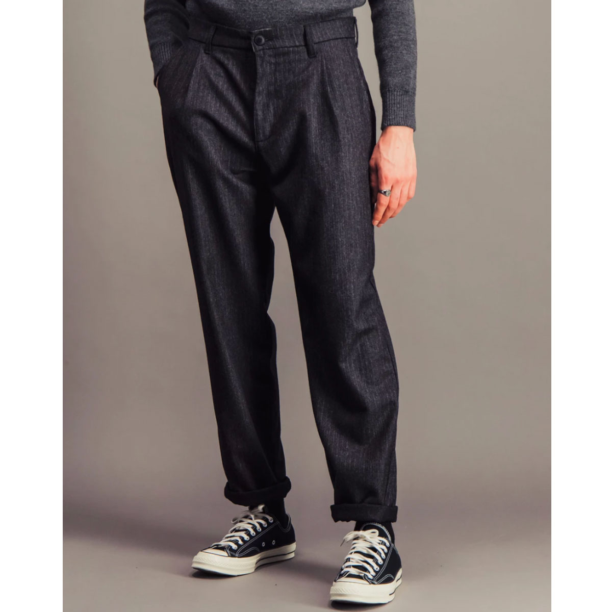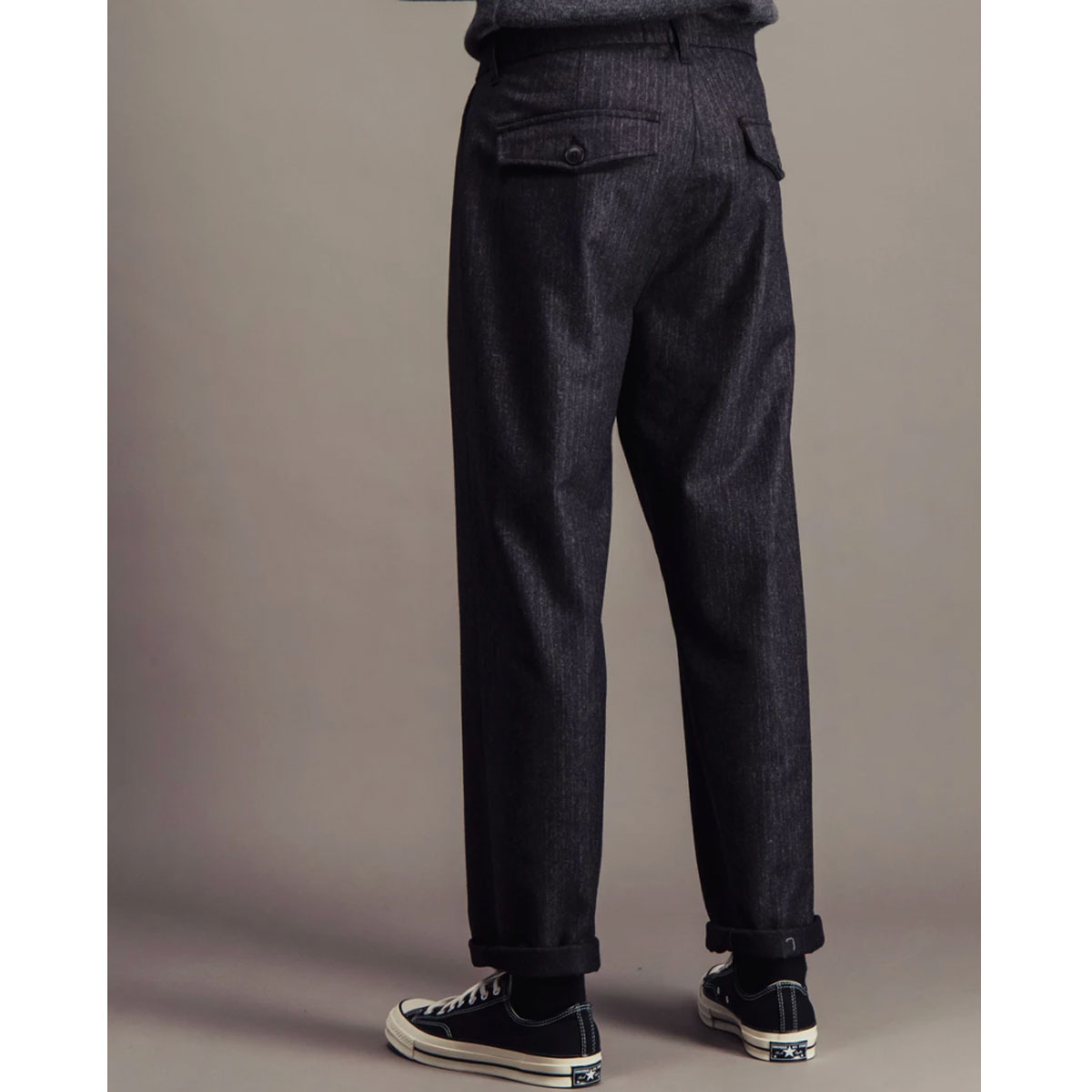 Réalisation : Pantalon à pinces en laine, couleur anthracite chiné à rayures