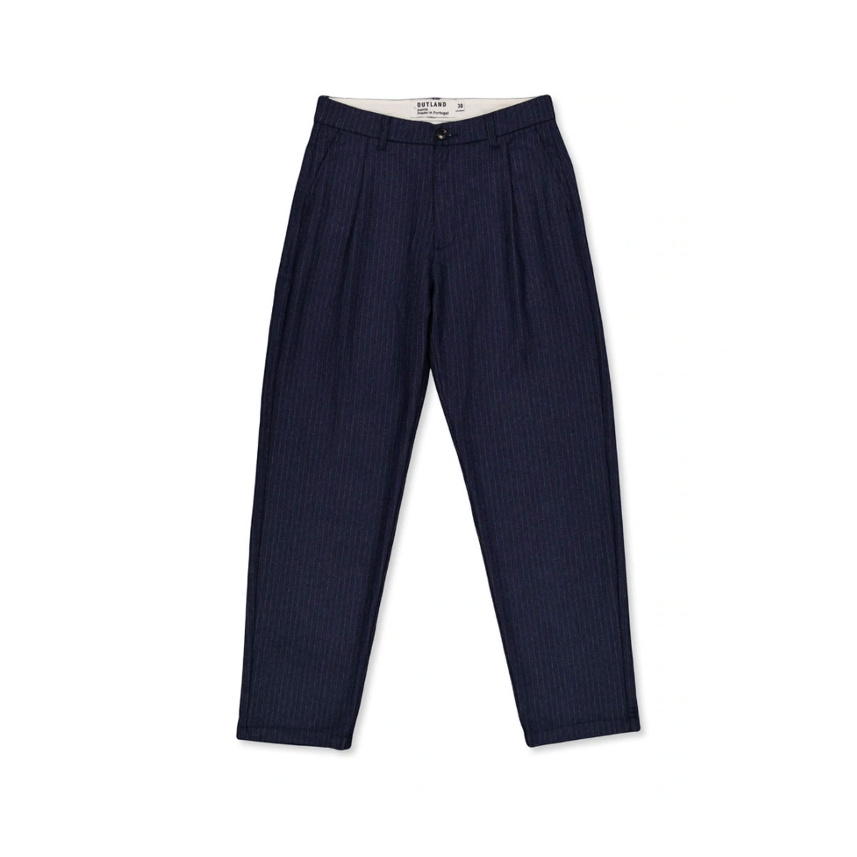 OUTLAND Plantalon PLEATS Wool rayures Marine