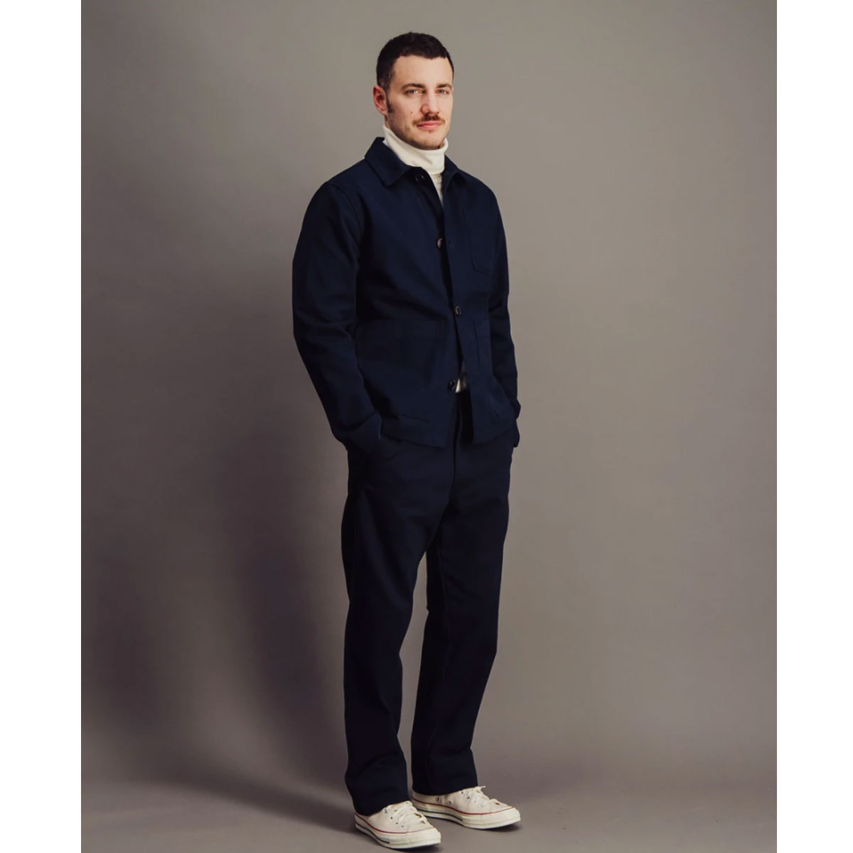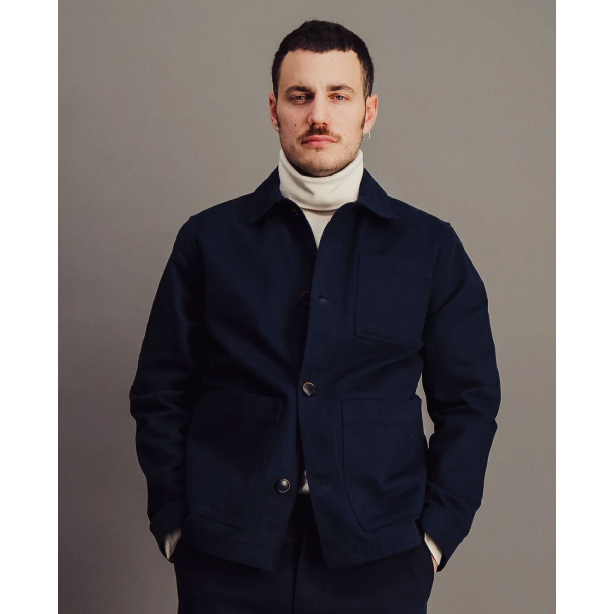 Réalisation : Veste en sergé de coton épais, couleur marine