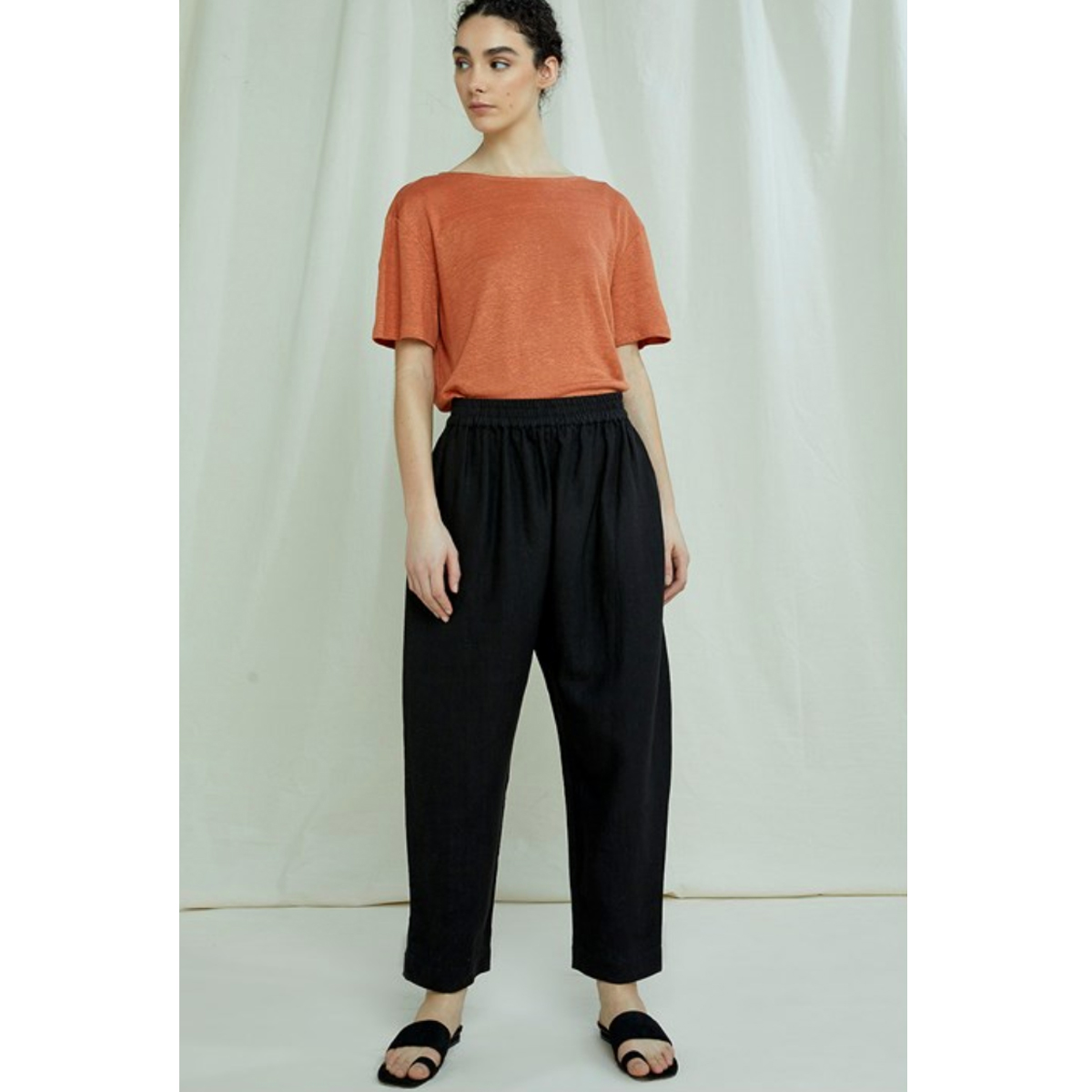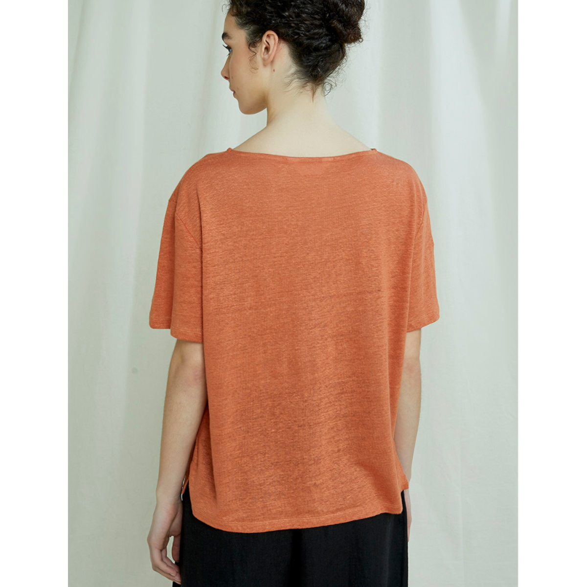 Réalisation : Coupe décontractée avec col rond et manches drapées aux coudes. Fabriqué à partir d’un lin 100% biologique certifié GOTS léger et respirant.