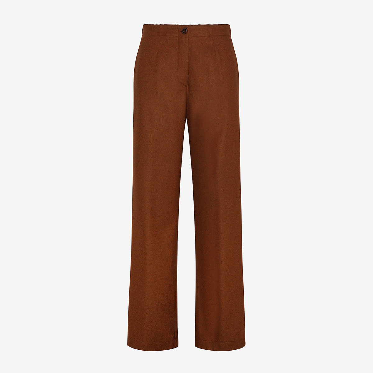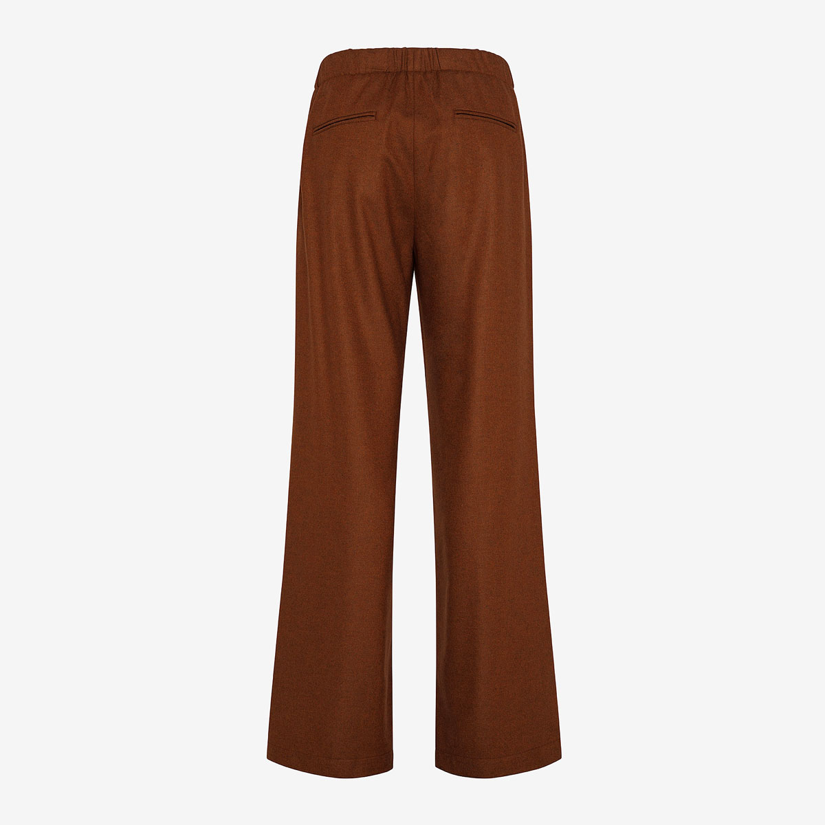Réalisation : Pantalon avec coupe légèrement ample en flanelle de viscose et laine. Poches arrière passepoilées et élastique à la taille arrière. Fermeture éclair et bouton devant.