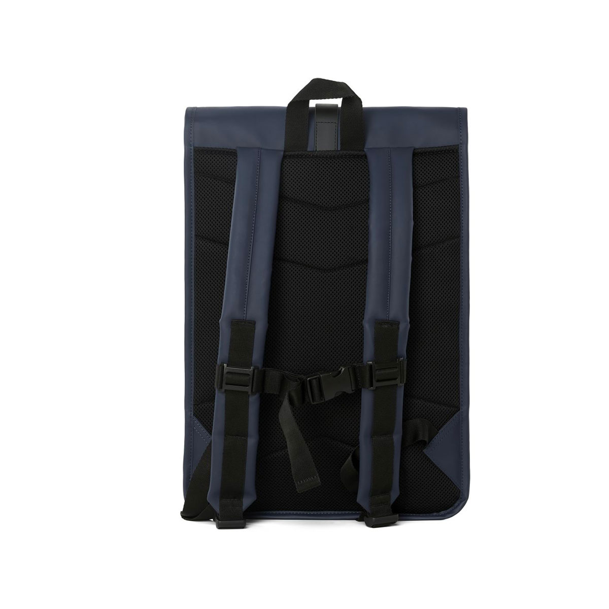 La parenthèse : Le Rolltop Backpack est confectionné en tissu PU emblématique et imperméable de Rains, offrant une résistance et une durabilité optimales pour un toucher ultra-doux.
