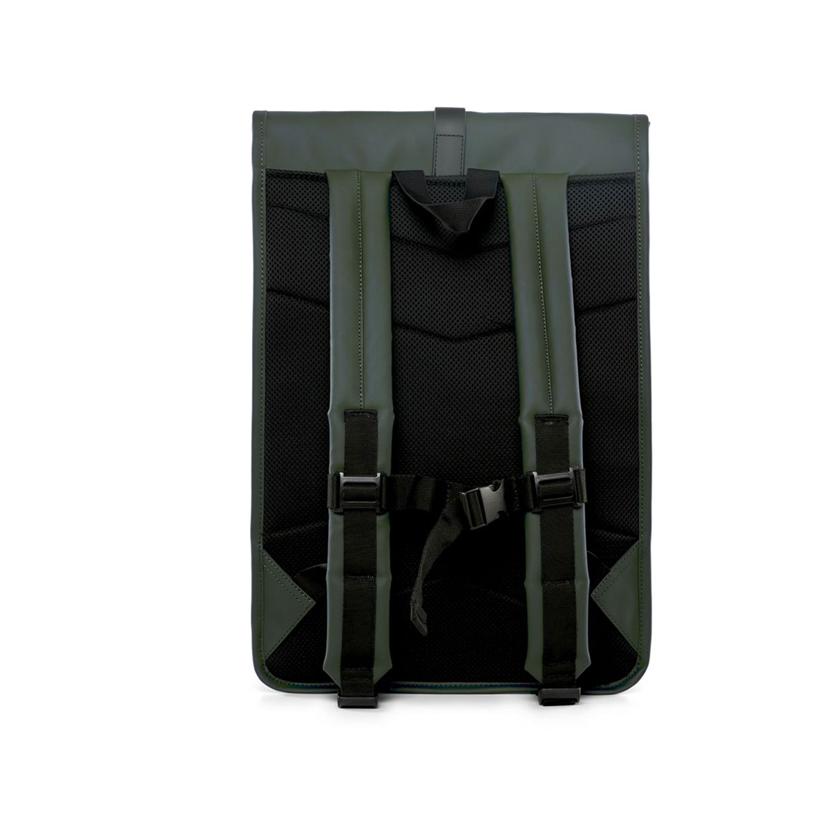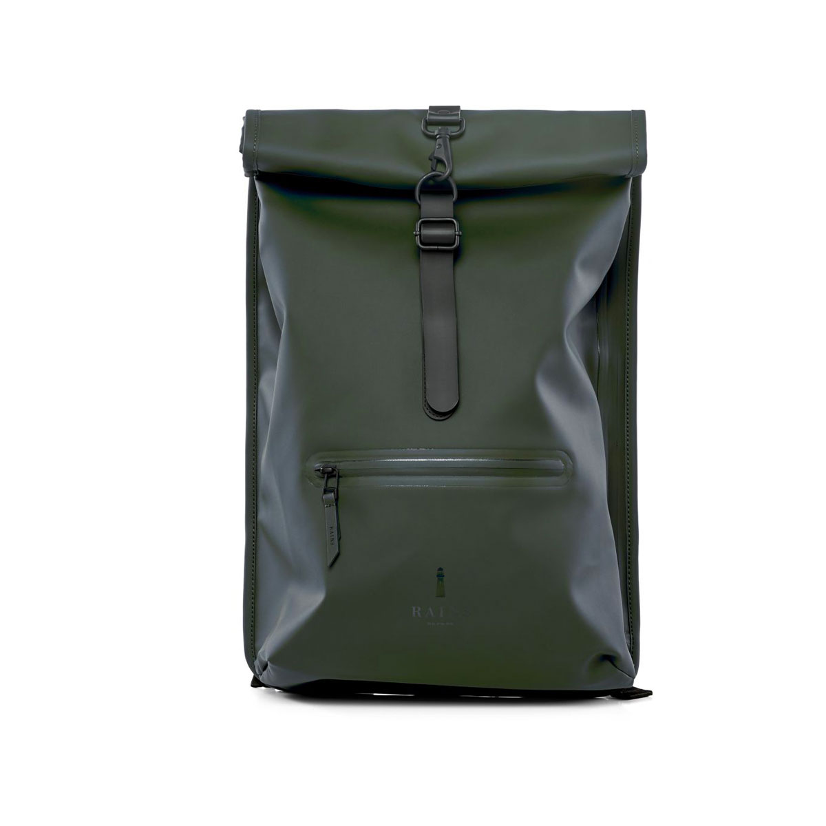 La parenthèse : Le Rolltop Backpack est confectionné en tissu PU emblématique et imperméable de Rains, offrant une résistance et une durabilité optimales pour un toucher ultra-doux.