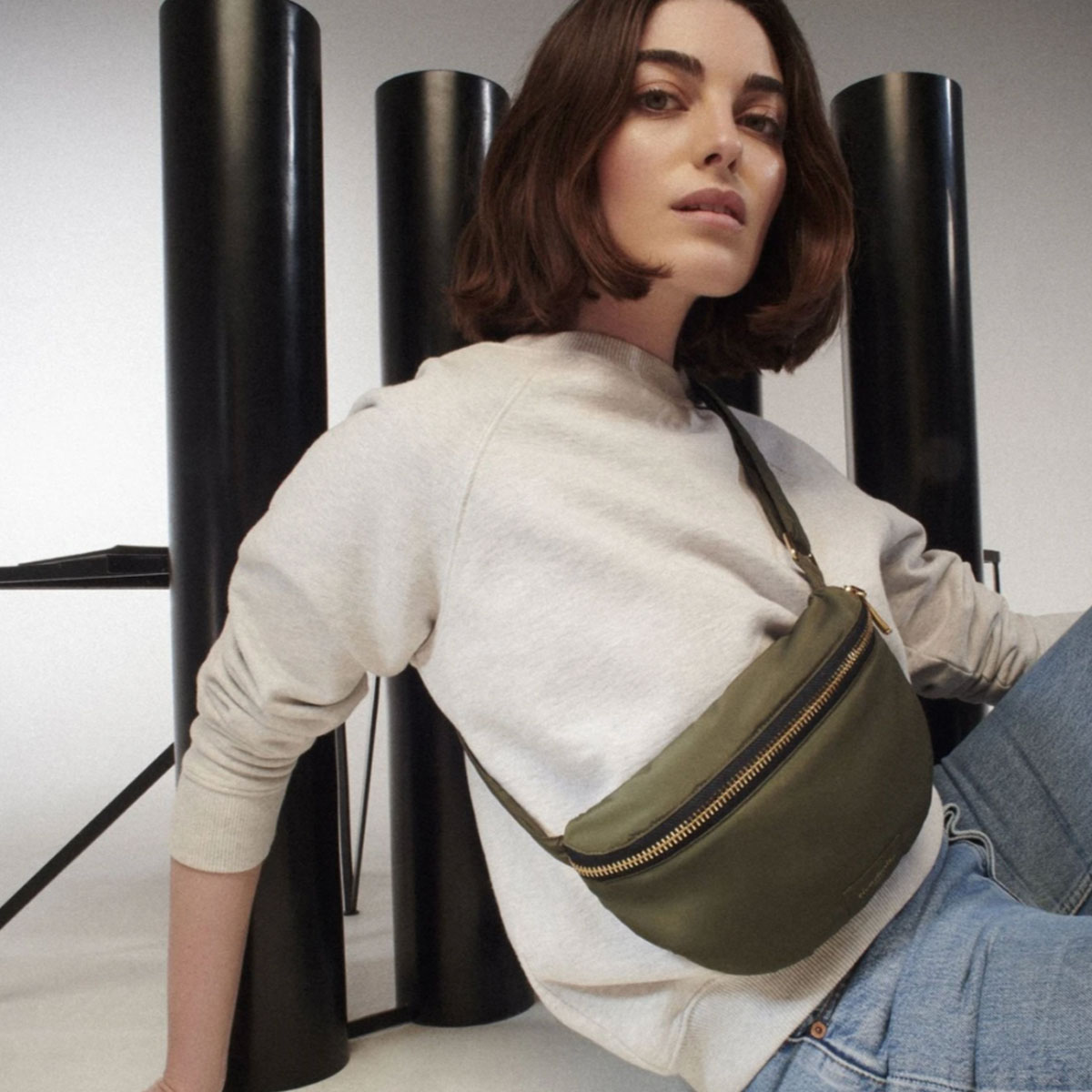 Réalisation : Le nouveau sac banane en nylon upcyclé. Sa forme arrondie tombe parfaitement sur le buste, et son large zip lui donne un style unique. Avec son léger matelassage et sa matière upcyclée imperméable. Sa anse réglable s’ajuste facilement pour pouvoir le porter en bandoulière ou à la taille selon les envies.