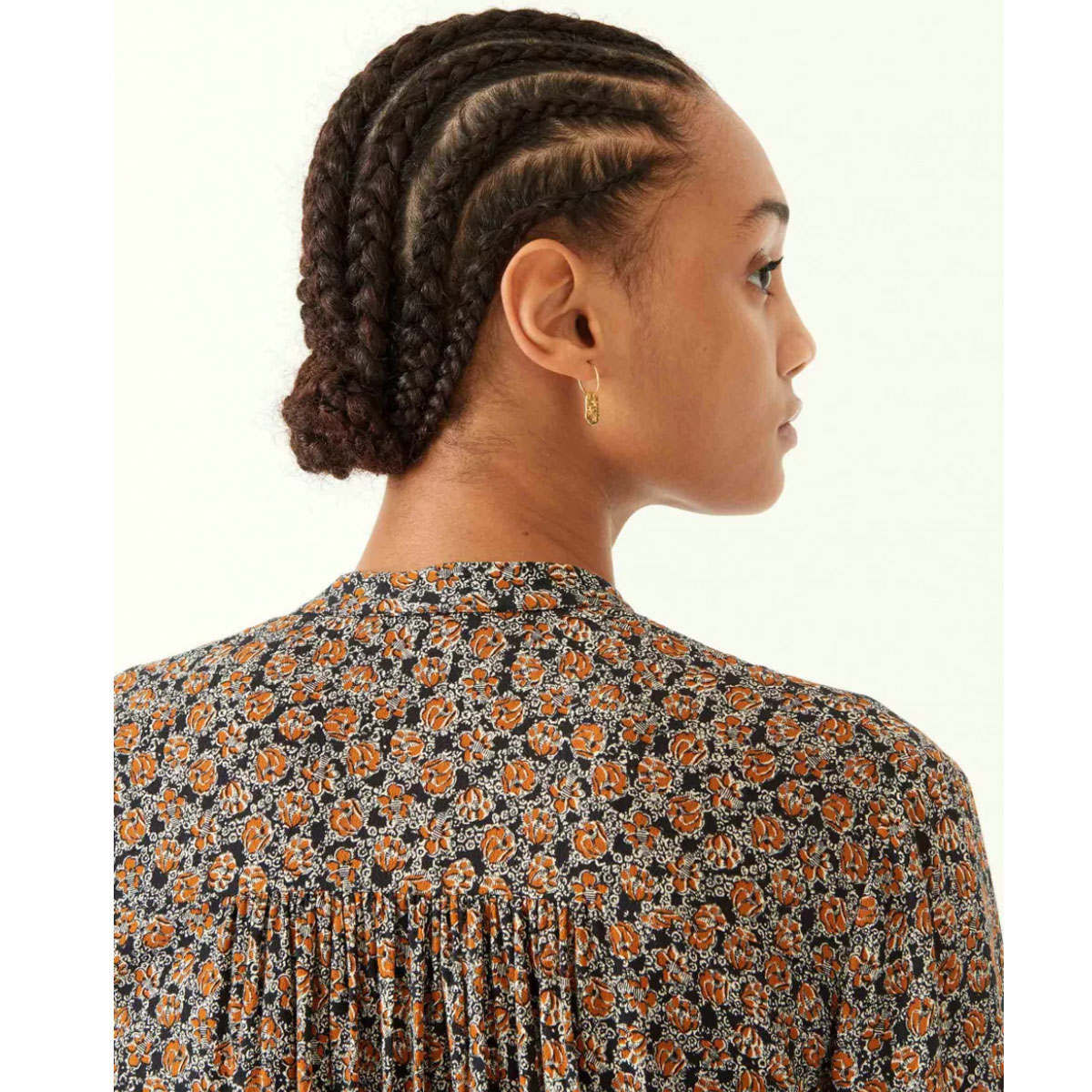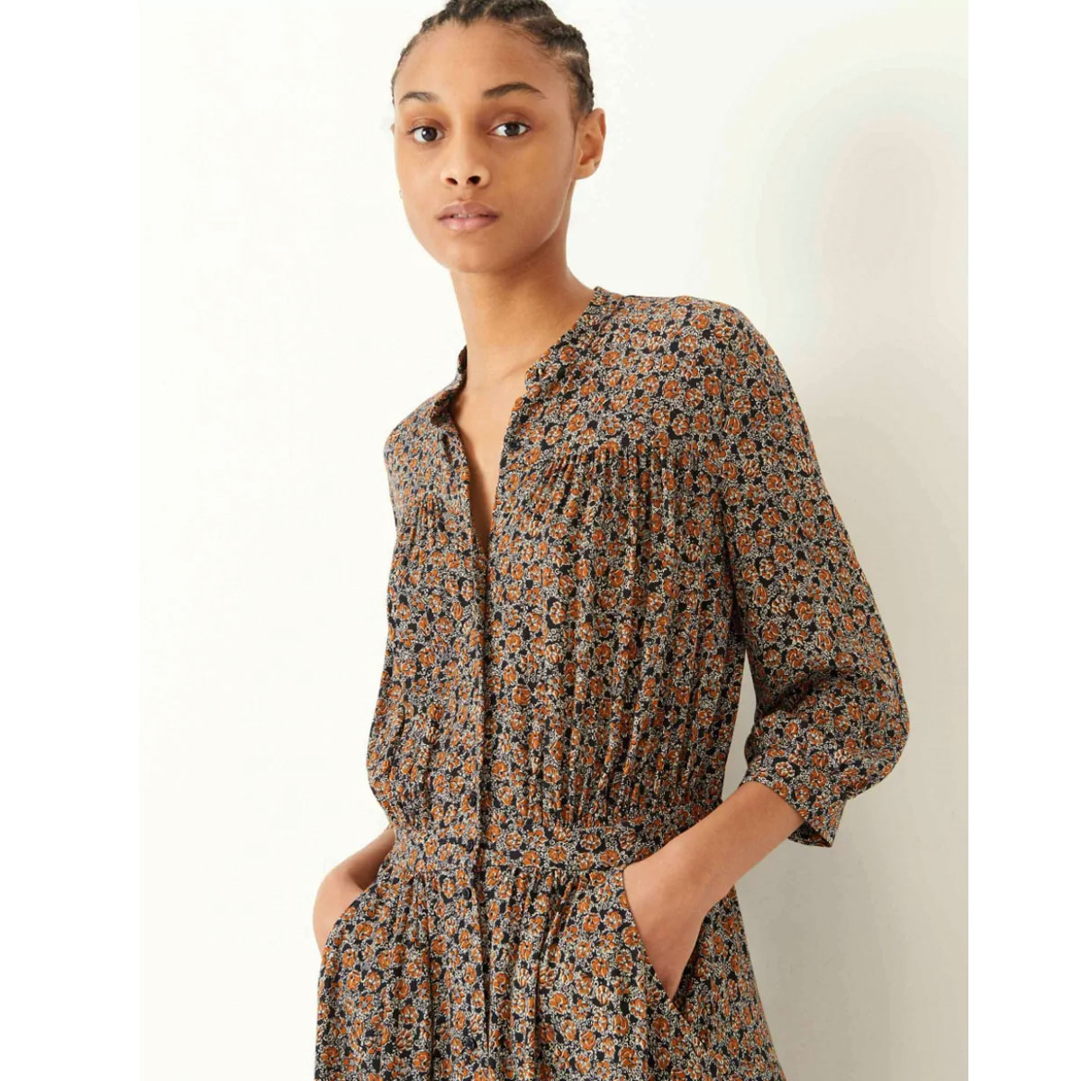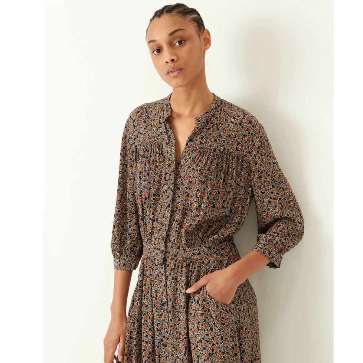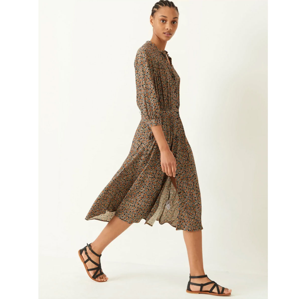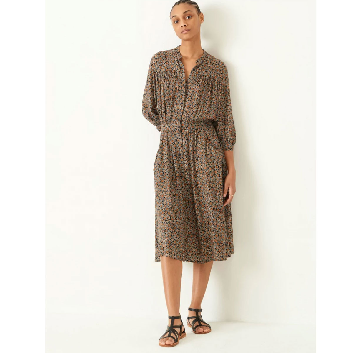 Robe chemisier mi-longue Anette en crêpe de viscose imprimé, motif exclusif Sessùn.