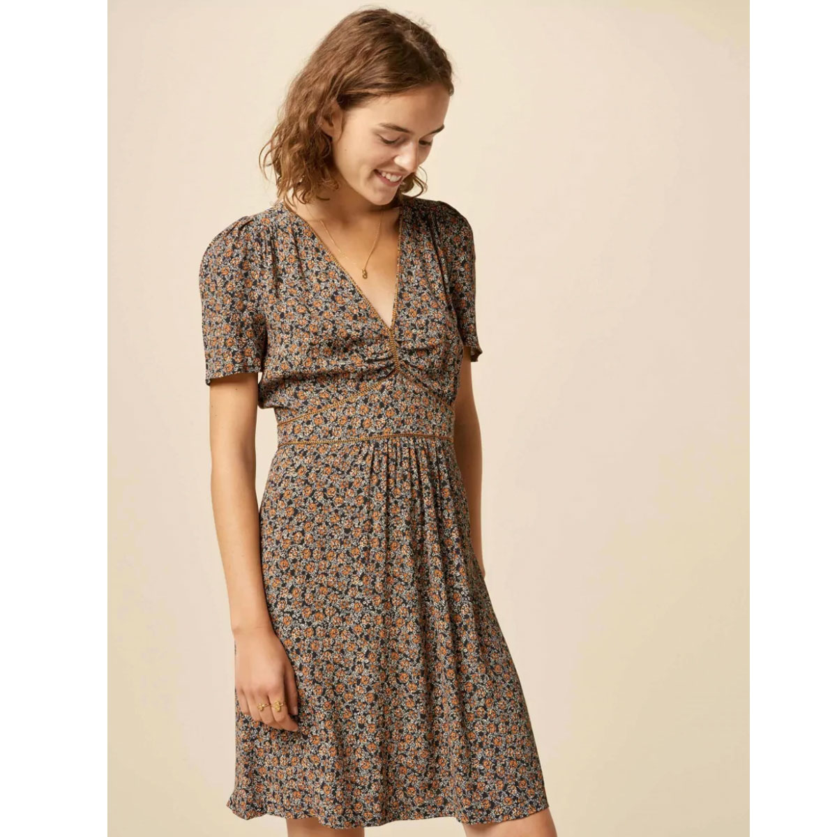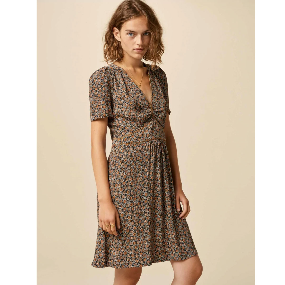 Robe courte Jimama en crêpe de viscose imprimé, motif exclusif Sessùn.