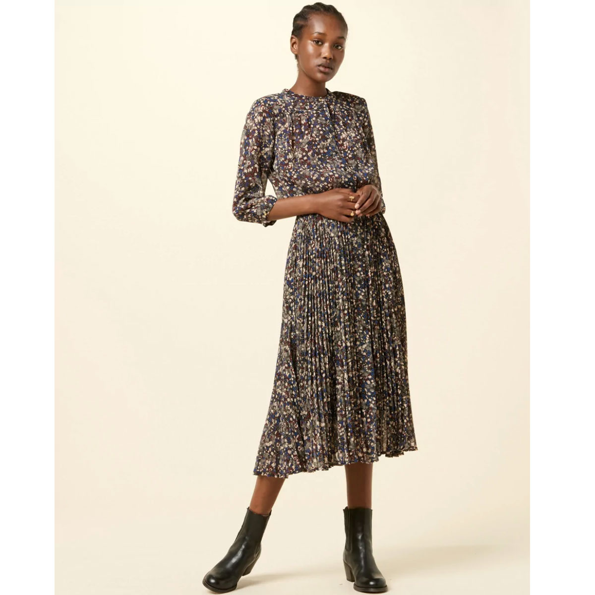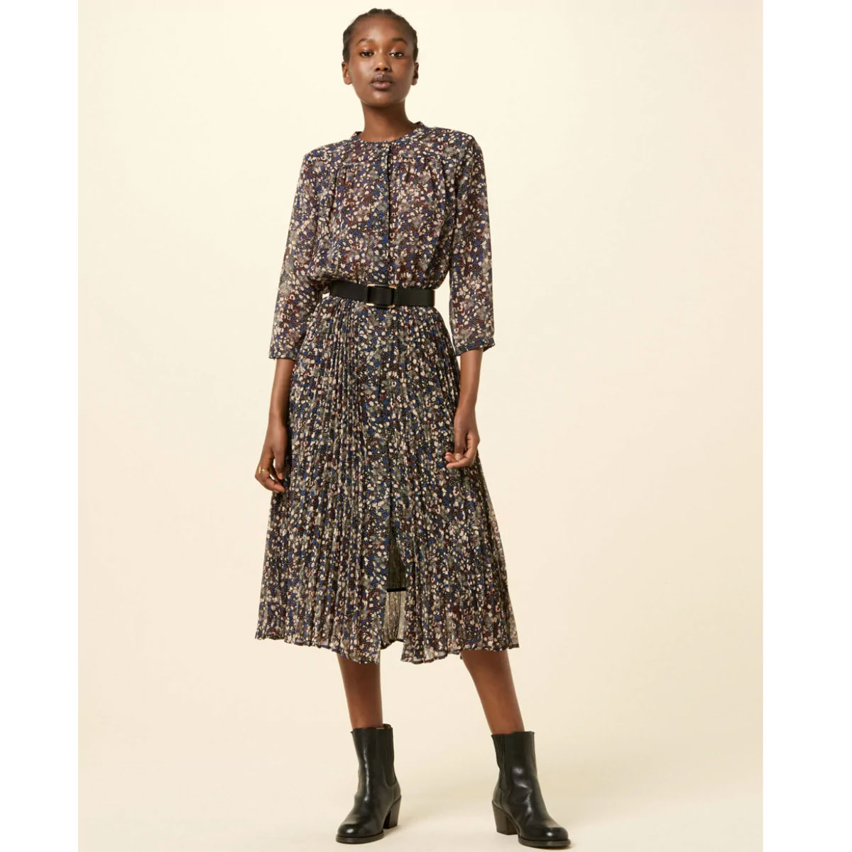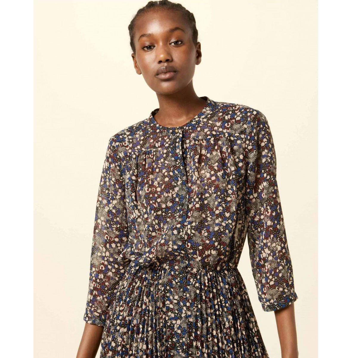 Réalisation : Robe longue plissée Painterly en crépon mousseline imprimé, motif exclusif Sessùn.