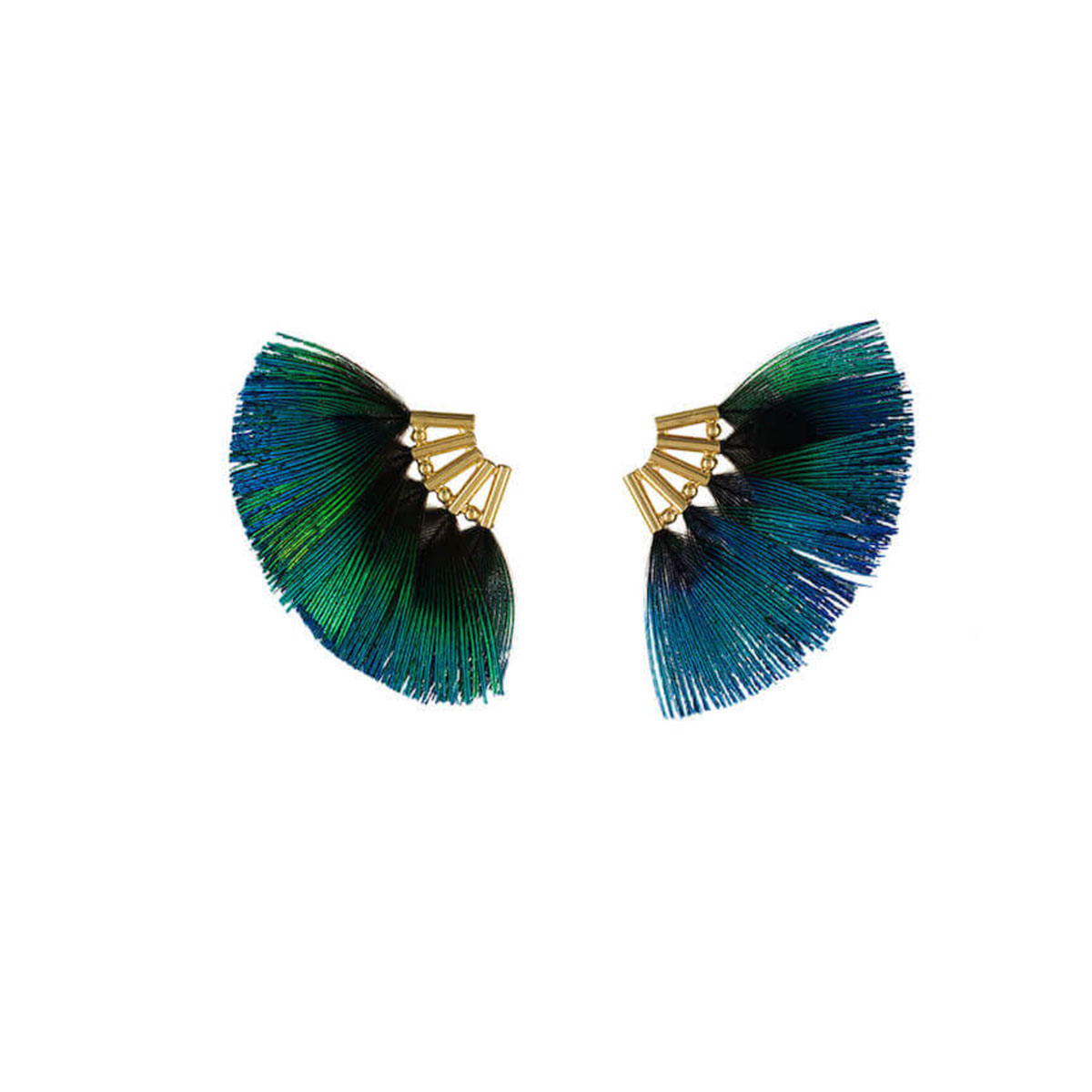 Réalisation : Boucles d’oreilles en plume bleu dorées à l’or fin