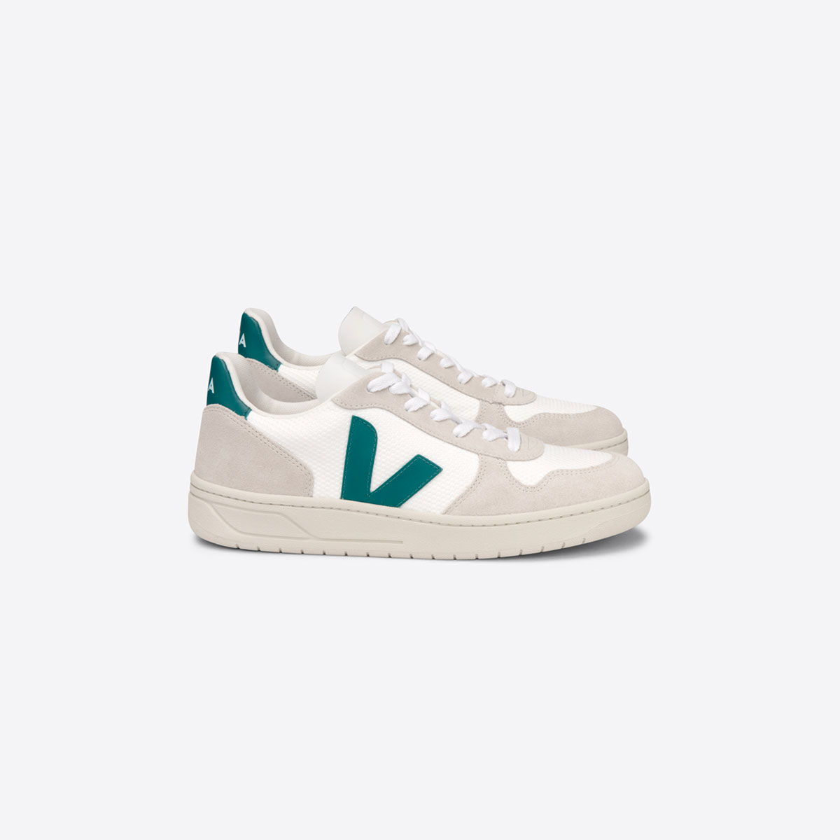 La parenthèse : Veja présente son modèle V-10 créé pour fêter son 10ème anniversaire. Le modèle V-10 est fabriqué dans une combinaison de matériaux écologiques et durables symbolisant 10 ans d’amour. Si vous êtes entre deux tailles nous vous conseillons de prendre la taille inférieure.